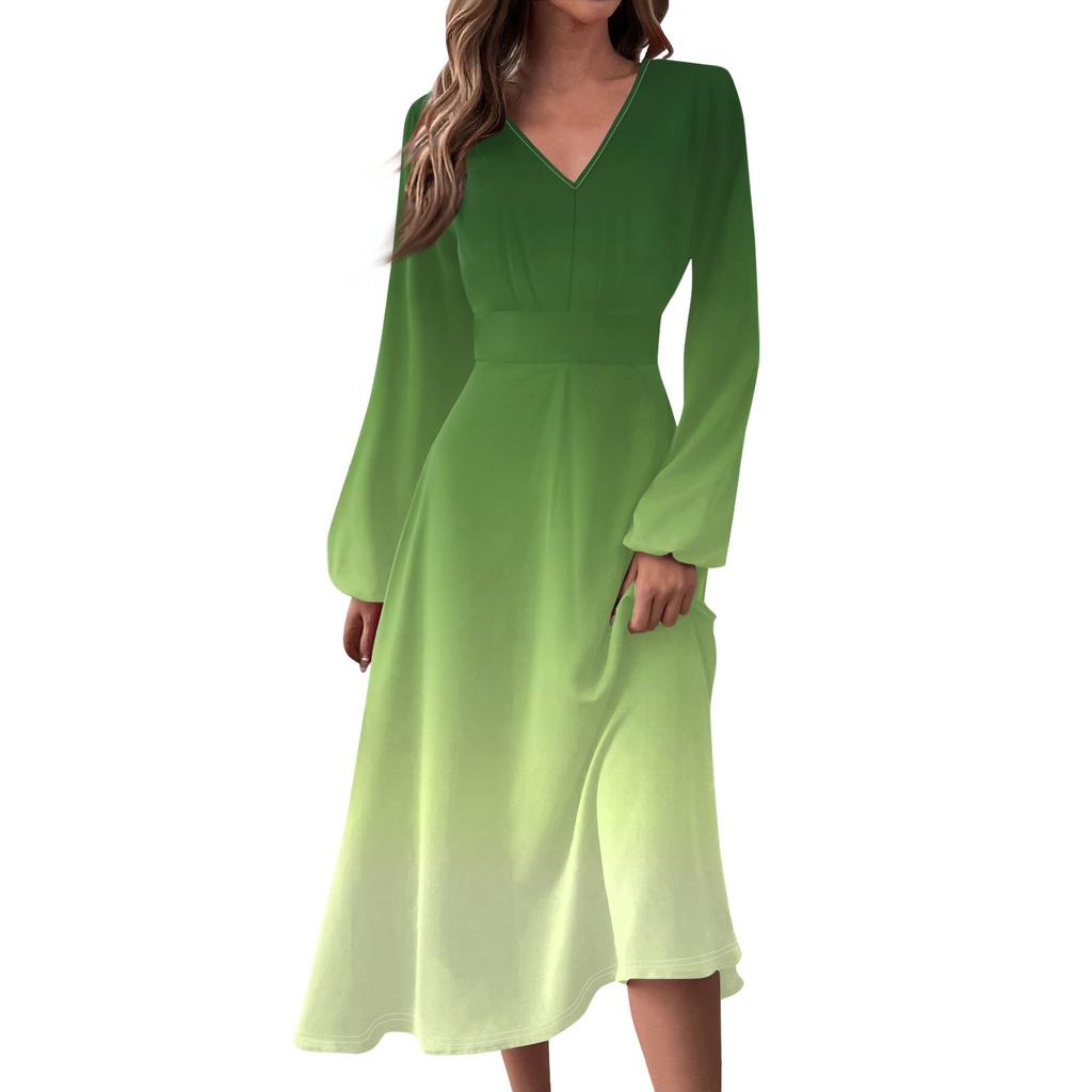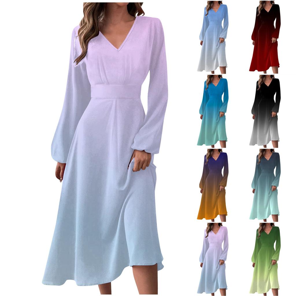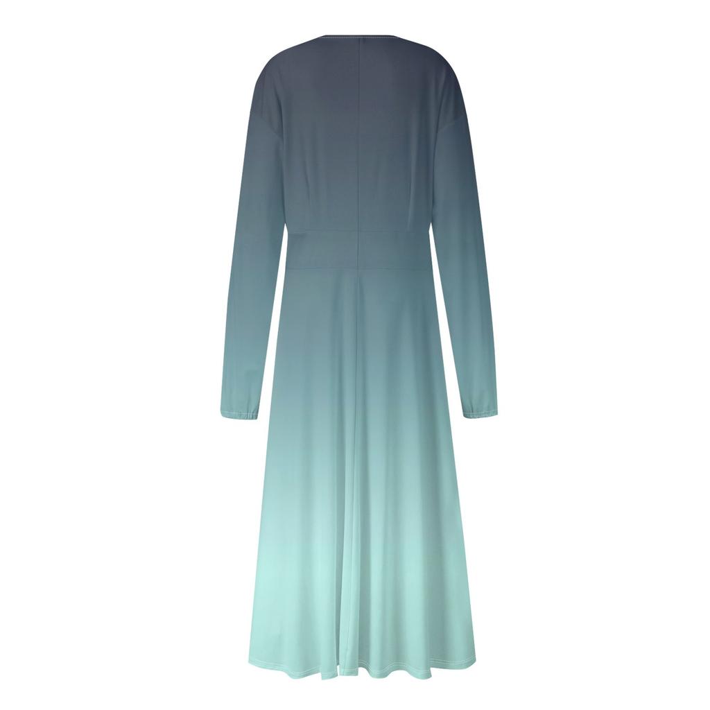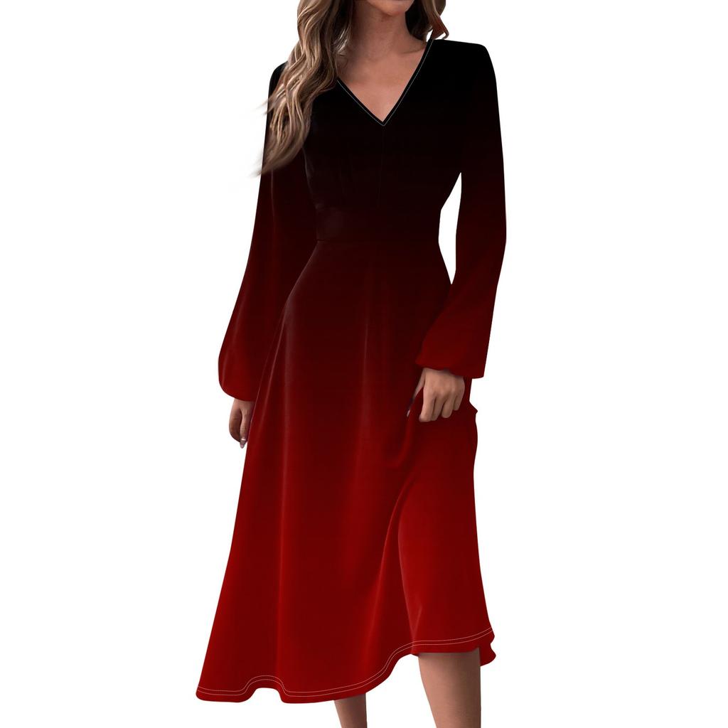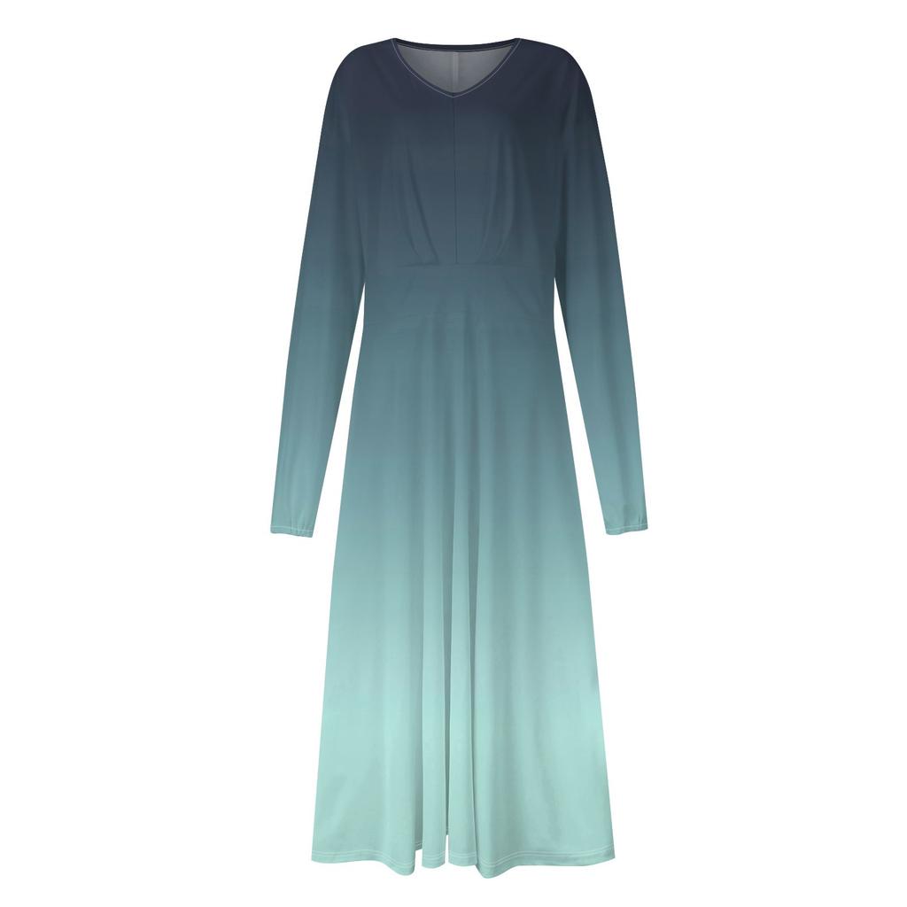 Женское осеннее и зимнее повседневное модное длинное платье с v-образным вырезом и длинным рукавом с градиентным принтом