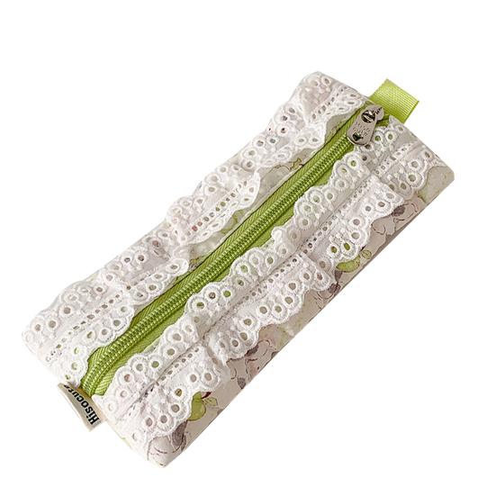Элегантное кружевное украшение: Подчеркивая его эстетическую привлекательность, пенал украшен кружевной отделкой, добавляющей нотку элегантности и стиля к вашему хранилищу для канцелярских товаров или косметики.