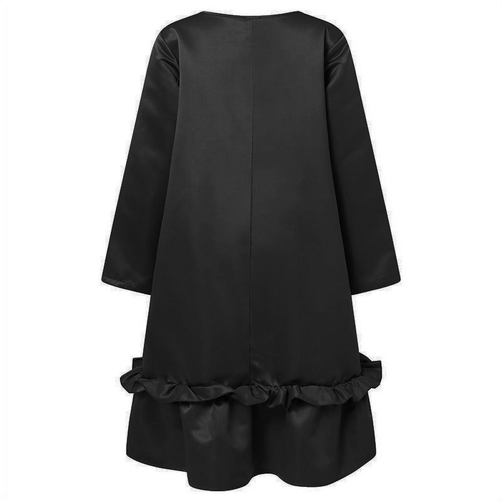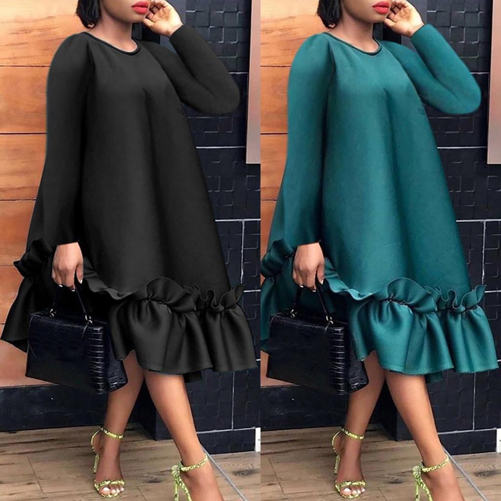 Женское однотонное винтажное платье с рюшами и круглым вырезом и длинными рукавами, повседневное свободное праздничное платье