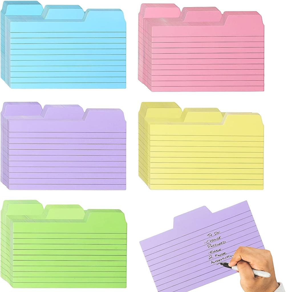 Подходит для студентов для организации учебных записей и ключевых понятий. Используйте цветные разделители для разделения заметок по предмету, главе или теме — например, желтый для биологических терминов, фиолетовый для цитат из литературы. Вкладки позволяют быстро перемещаться между разделами, делая сеансы повторения более эффективными. Будь то подготовка к экзаменам или организация лекционных записей, эти индексные карточки помогают структурировать информацию.