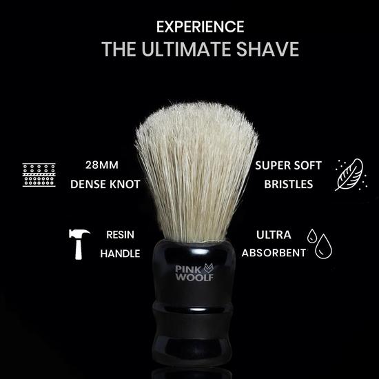 ОПИСАНИЕ ПОМАЗКА ДЛЯ БРИТЬЯ: Поднимите свою рутину влажного бритья на новый уровень с помощью кабаньей кисти для бритья Pink Woolf.. Наша кисть из кабана — отличная отправная точка для улучшения вашего ежедневного бритья благодаря узлу 25 мм, который удерживает воду и создает густую, пенистую, обильную пену для вашего ежедневного бритья.. Ручная работа в Индии. ПОЖАЛУЙСТА, ОБРАТИТЕ ВНИМАНИЕ - Роскошные помазки из щетины кабана могут иметь характерный запах кабана, и щетина может выпадать при первом бритье.. Оба меньше после нескольких бритьев