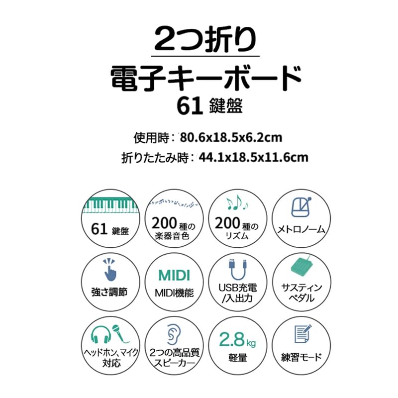 [Различные функции и поддержка MIDI] Это цифровое пианино с 61 клавишей поставляется с 200 тембрами и 200 ритмами, 80 встроенными демонстрационными песнями и широким спектром функций, включая запись, воспроизведение, сустейн, метроном, темп и аккорды. Он также работает с устройствами iOS и Android. Подключите его к компьютеру или планшету, чтобы использовать различные приложения для практики игры на фортепиано и музыкальные игры, делая обучение и практику еще более увлекательными для начинающих.