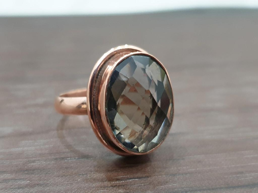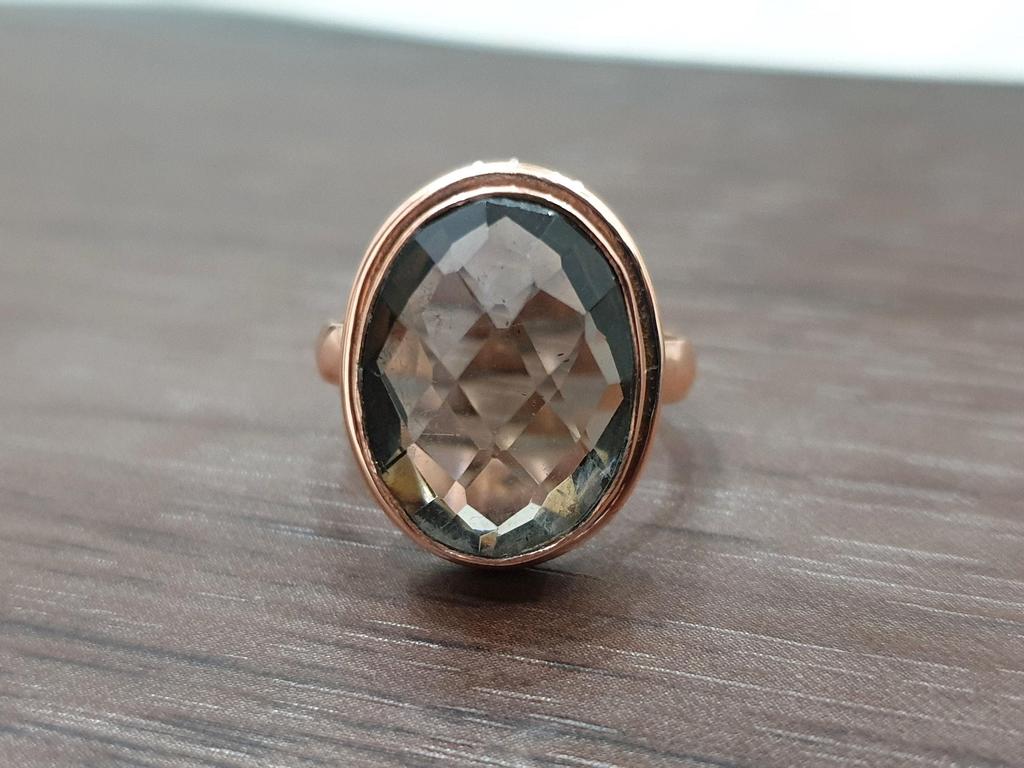 Овальный Дымчатый Кварц Огранки «Роза» Серебро 925 пробы с Покрытием Розовым Золотом Кольцо Ювелирное Изделие