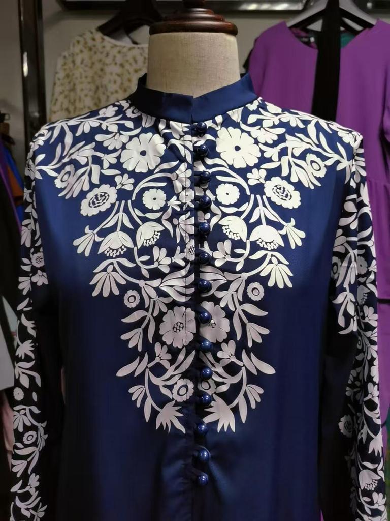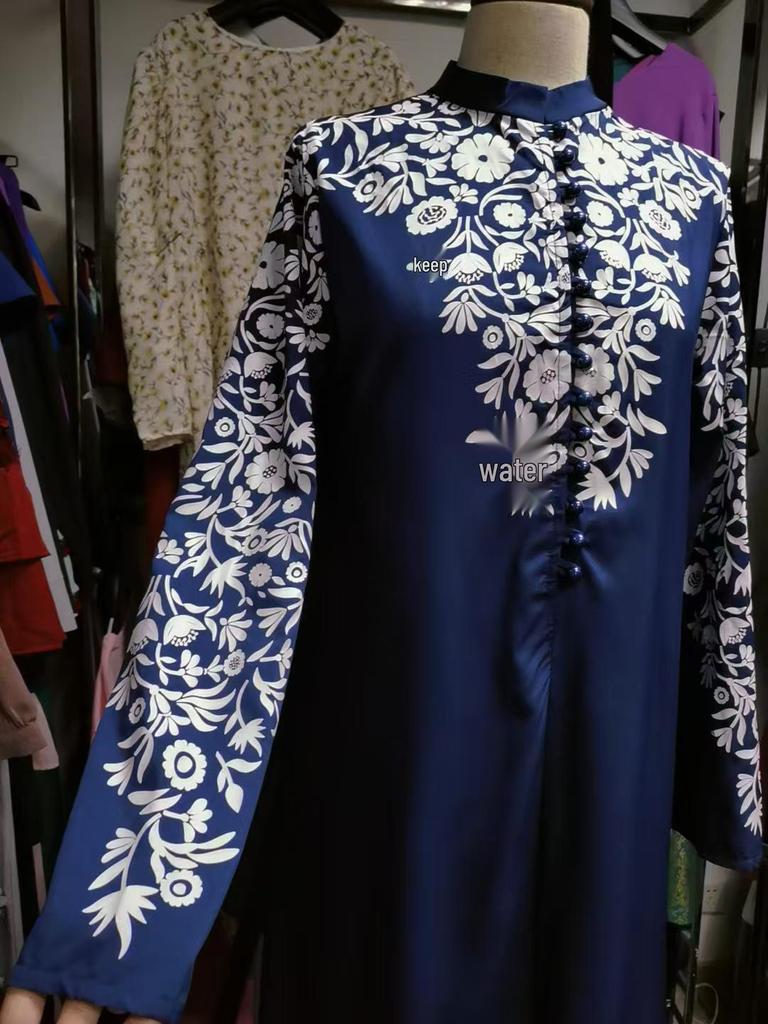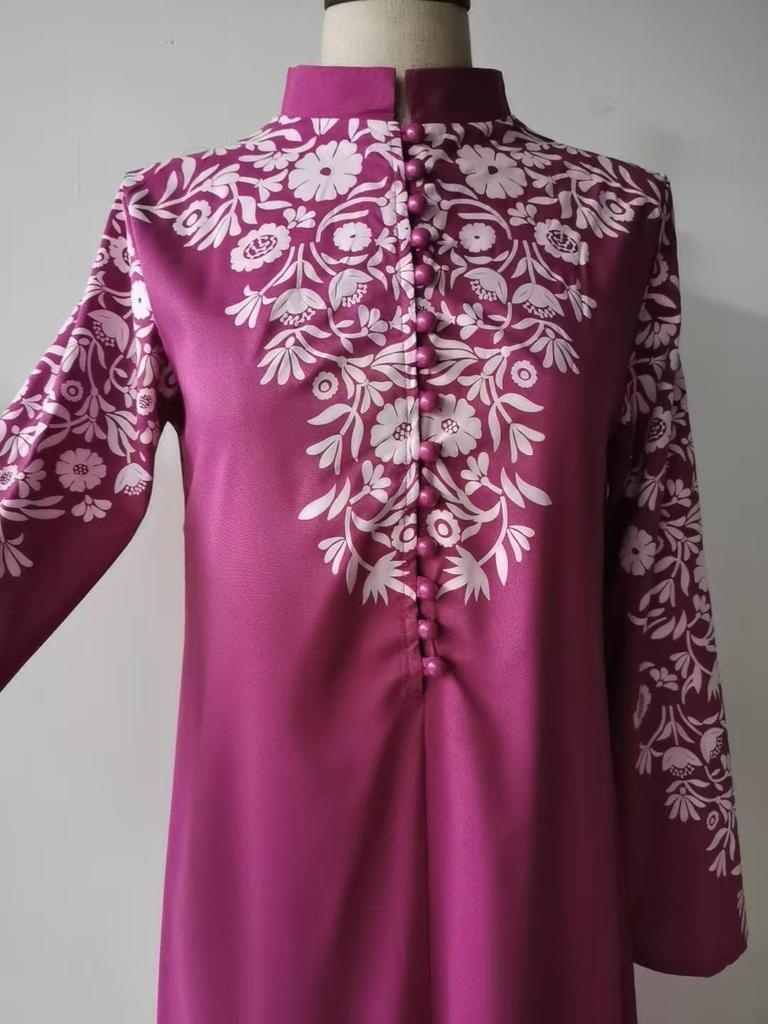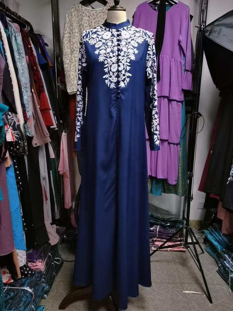 Idodo Мусульманское женское платье с длинным рукавом, воротником-стойкой, цветочным принтом, этнической юбкой-свинг 1491