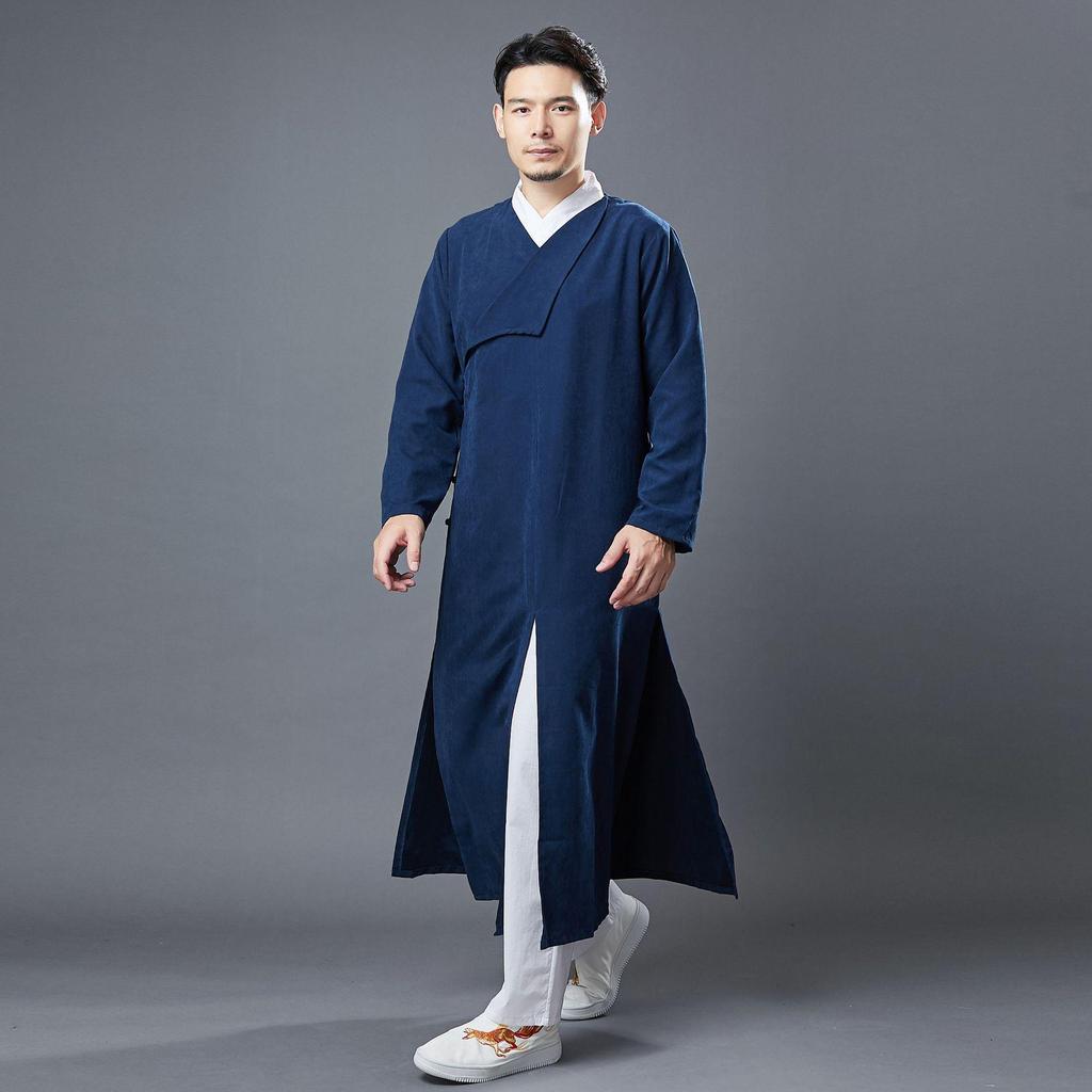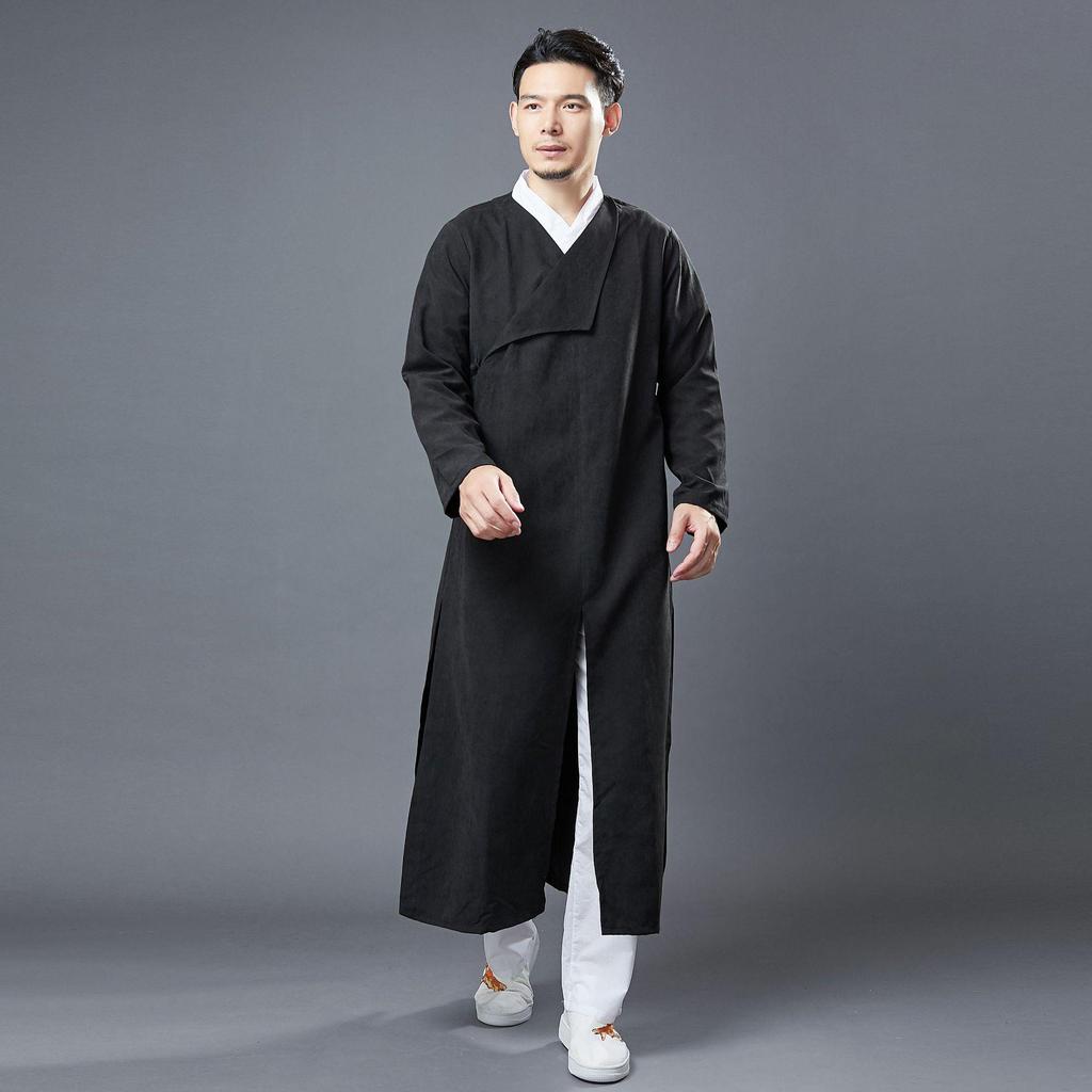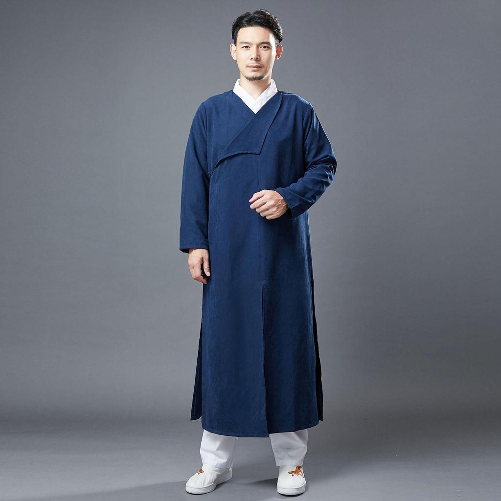 Мужская повседневная льняная рубашка в китайском стиле с пуговицами-лягушками - Халат для чайной церемонии в стиле дзен