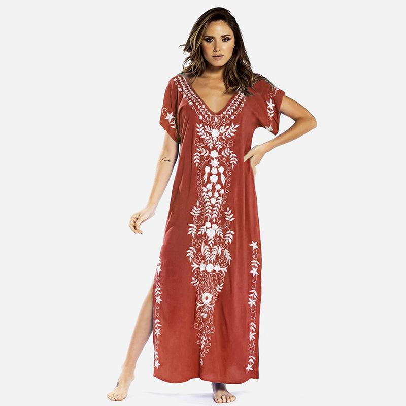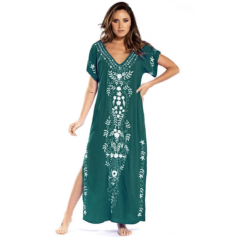 Европейско-американский хлопковый вышитый пляжный халат: Длинное платье с защитой от солнца и накидка для бикини