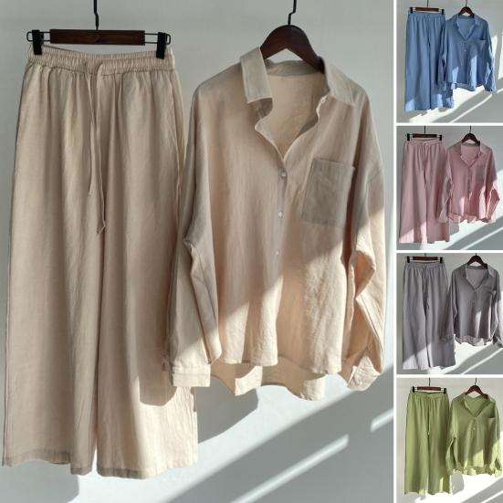 Этот комплект из 2 предметов изготовлен из дышащей хлопчатобумажной ткани, обеспечивающей комфорт и стиль весной, летом и осенью.. Повседневный однотонный дизайн универсален и подходит для людей разного типа телосложения и возраста.. Этот женский костюм свободного кроя сочетает в себе стиль и комфорт..