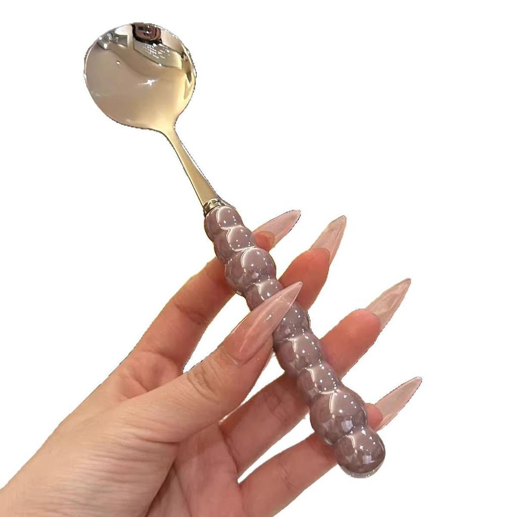 Роскошная суповая ложка из нержавеющей стали с ручкой из жемчужной керамики