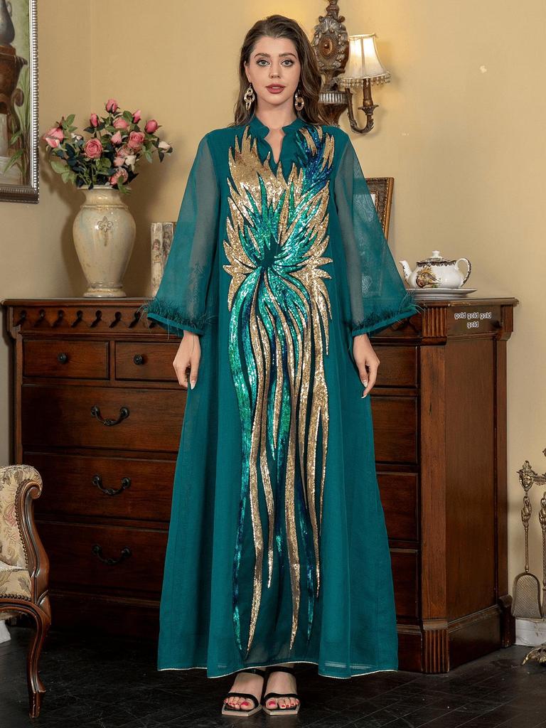 SW008 Мусульманская абайя с V-образным вырезом и длинными рукавами, украшенная страусиными перьями и пайетками — купить товар онлайн с бесплатной доставкой по всему миру!