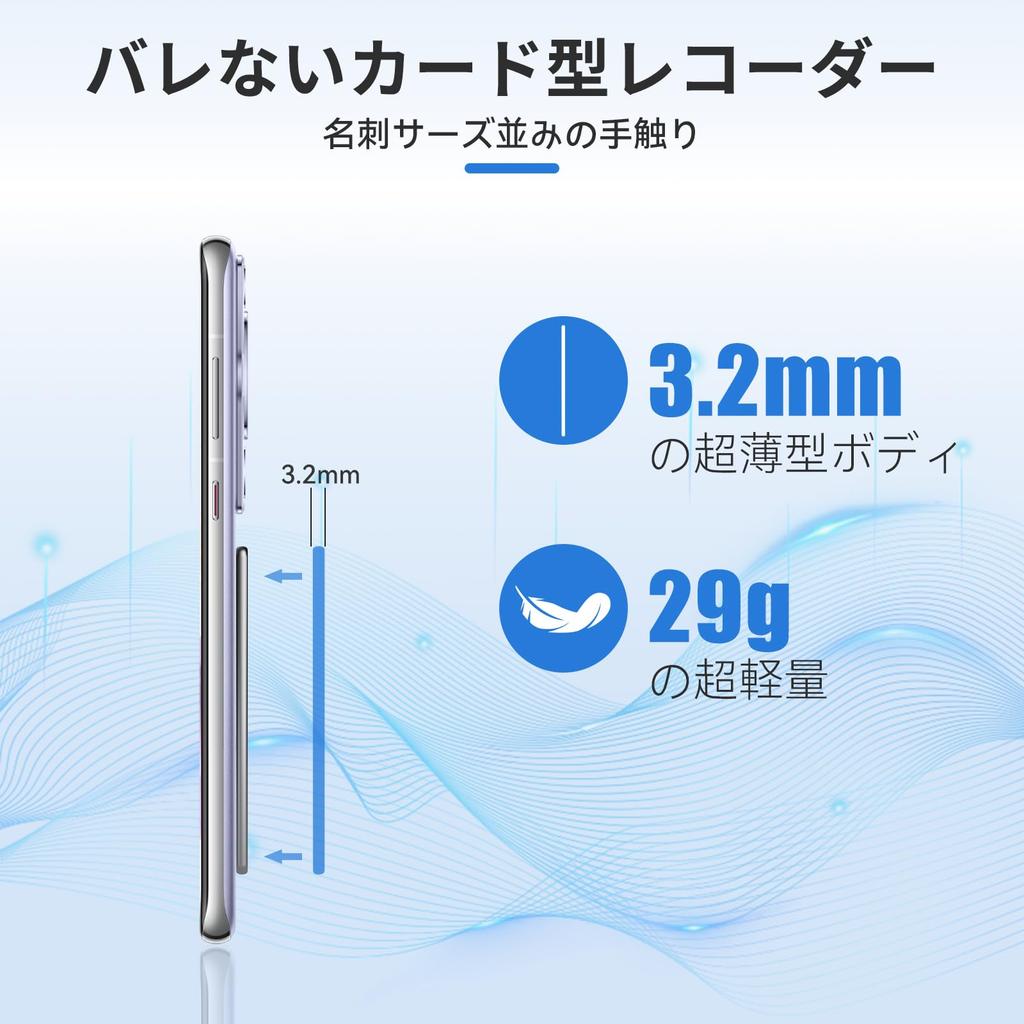 [Сверхлегкий, всего 30 г! Диктофон с искусственным интеллектом, который помещается в кармане] Этот компактный диктофон в форме карты весит всего 30 г и имеет размер примерно с кредитную карту (приблизительно 8,6 см x 5,4 см x 0,3 см). Входящий в комплект магнитный защитный чехол крепит его к вашему смартфону, позволяя подключить его к вашему смартфону и брать с собой куда угодно.. Находитесь ли вы в командировке, путешествуете или едете на работу, вы можете легко получить доступ к диктофону, когда он вам понадобится.