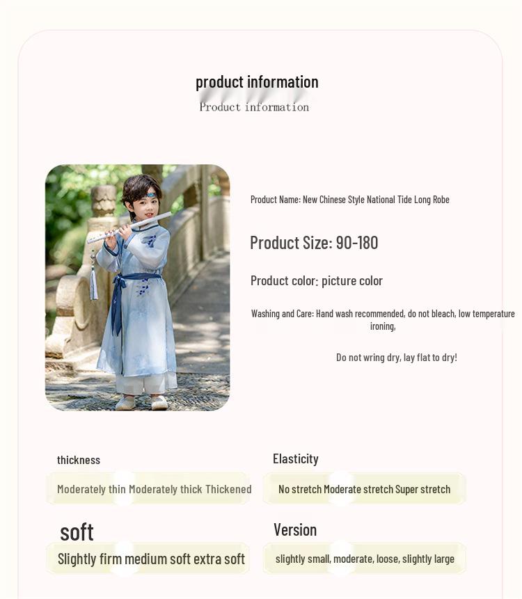 Нарядите своего ребенка в частицу истории с этим комплектом мантии с длинным рукавом в древнем стиле Тан, разработанным специально для мальчиков.. Этот костюм, изготовленный из удобной хлопковой смеси, передает суть традиционной китайской культуры, обеспечивая при этом легкость носки и долговечность.. Идеальный для культурных мероприятий или праздничных случаев, комплект халата сочетает в себе исторический колорит и современный комфорт, что делает его идеальным выбором для любого юного искателя приключений.