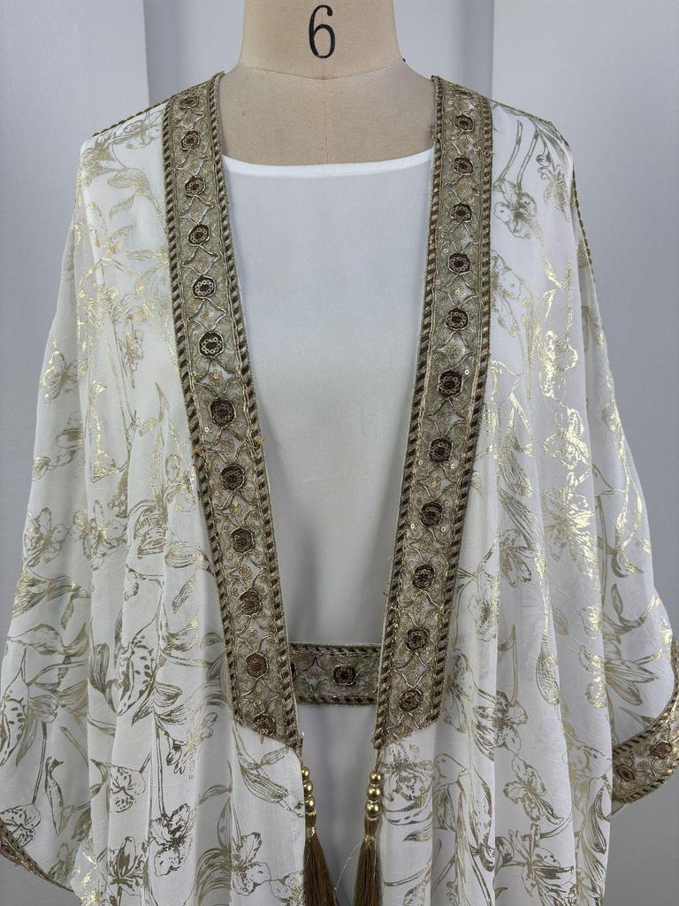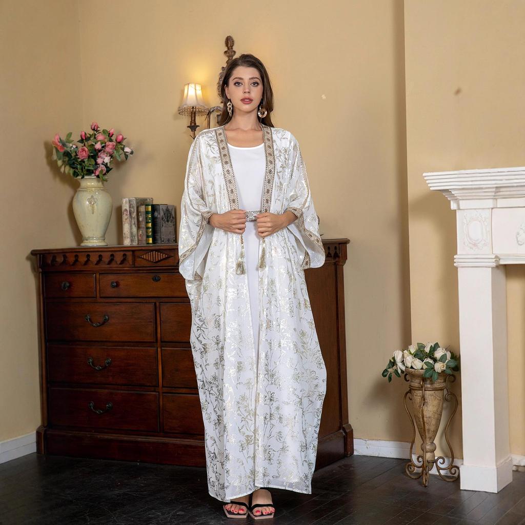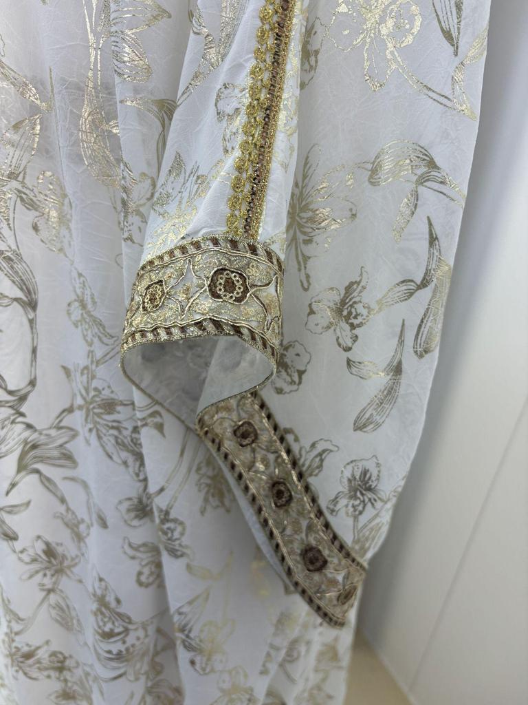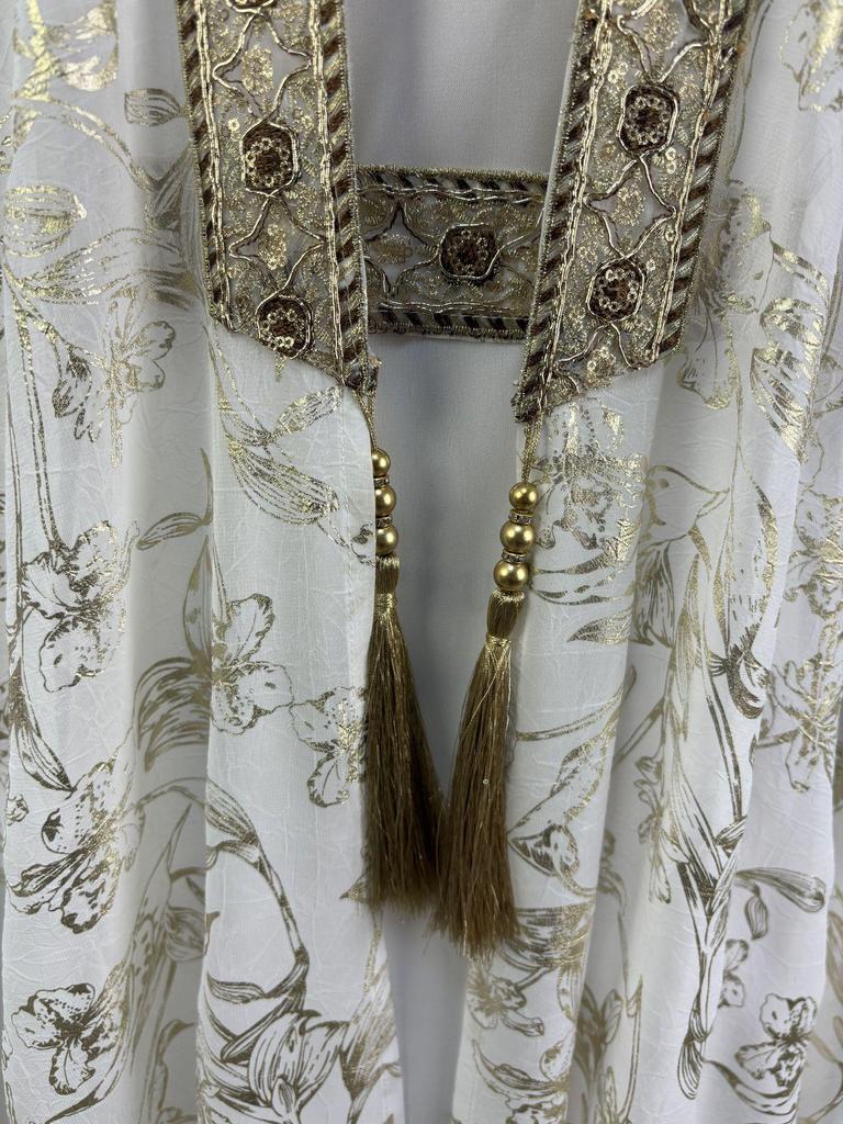 Окунитесь в элегантность и комфорт с этой изысканной длинной мантией-абайей, созданной специально для мусульманок, ценящих неподвластную времени моду.. Изготовленное из легкого шифона, это изделие имеет струящийся силуэт, идеально подходящий для теплых месяцев.. Деликатное горячее тиснение на ткани добавляет нотку изысканности, делая ее идеальным выбором как для повседневных выходов, так и для особых случаев.. Благодаря дышащему и воздушному шифоновому материалу этот халат обеспечивает изящный вид, сохраняя прохладу и комфорт в течение всего дня.