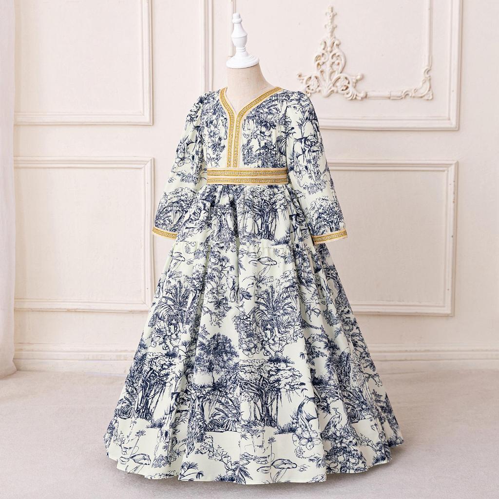 Это очаровательное праздничное платье создано для того, чтобы любая юная девушка почувствовала себя особой королевской крови.. Изготовлено из удобной хлопковой смеси, украшено красивым цветочным узором горячего тиснения, который добавляет нотку элегантности и очарования.. Идеальное для особых случаев, это платье сочетает в себе стиль и комфорт, позволяя вашей маленькой принцессе наслаждаться каждым моментом с грацией и уверенностью.