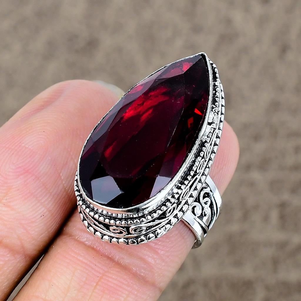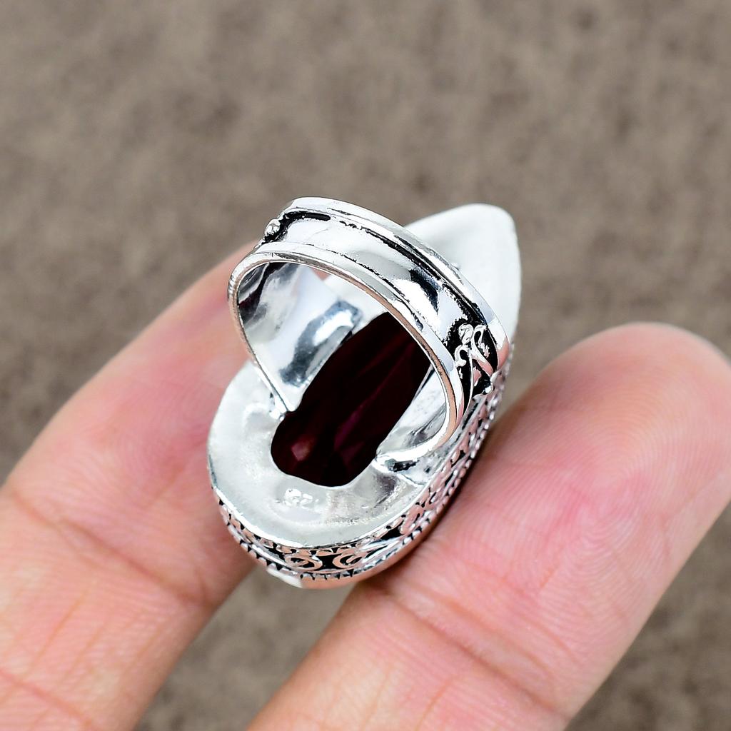Гранат Драгоценный камень Ручной работы Ювелирное изделие из стерлингового серебра 925 пробы Кольцо Размер 7 KKG-470