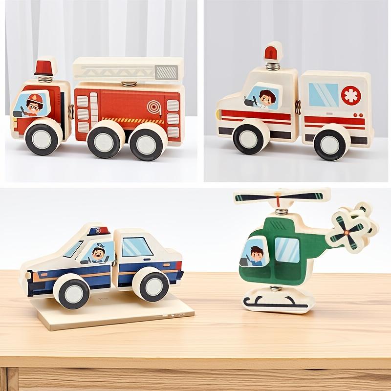 Конструктор «Транспорт», Деревянный 3D-пазл, Трехмерная пожарная машина, Скорая помощь, Полицейская машина, Пазл-вертолет, Игрушка-конструктор с защелками