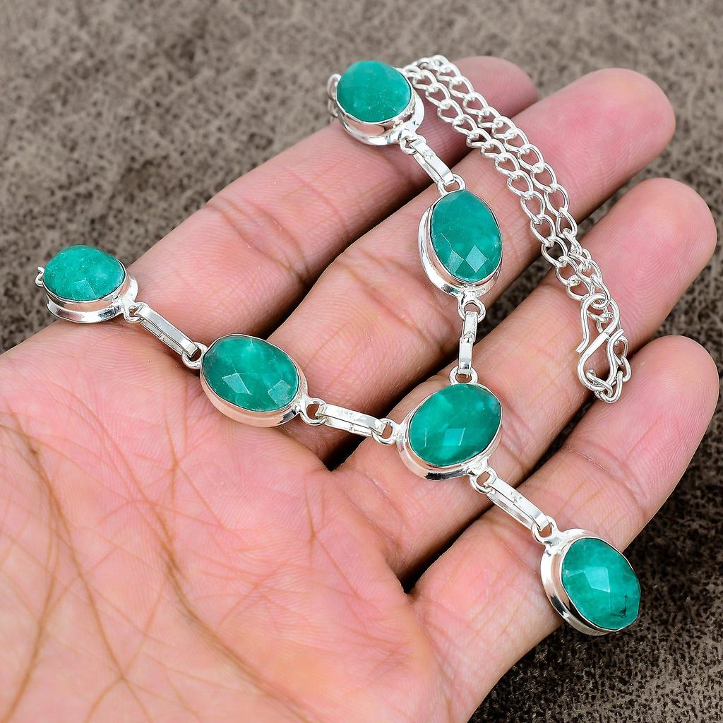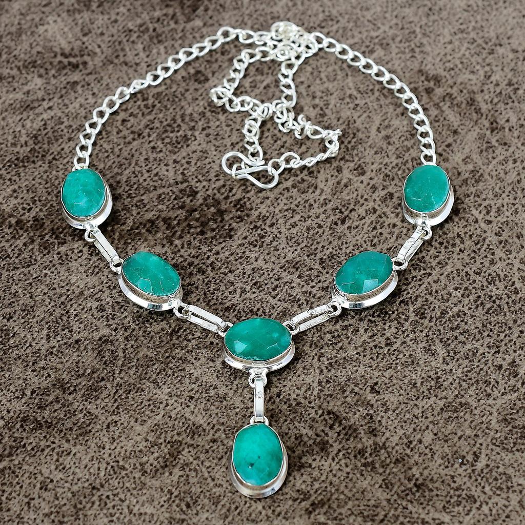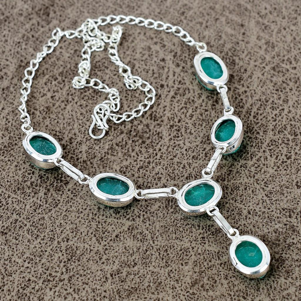 Green Jade Gemstone Handmade 925 Sterling Silver Jewelry Necklace 18" KKG-401