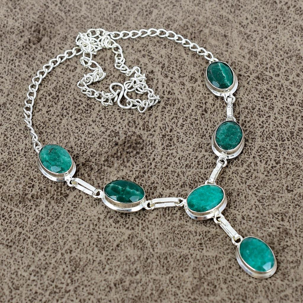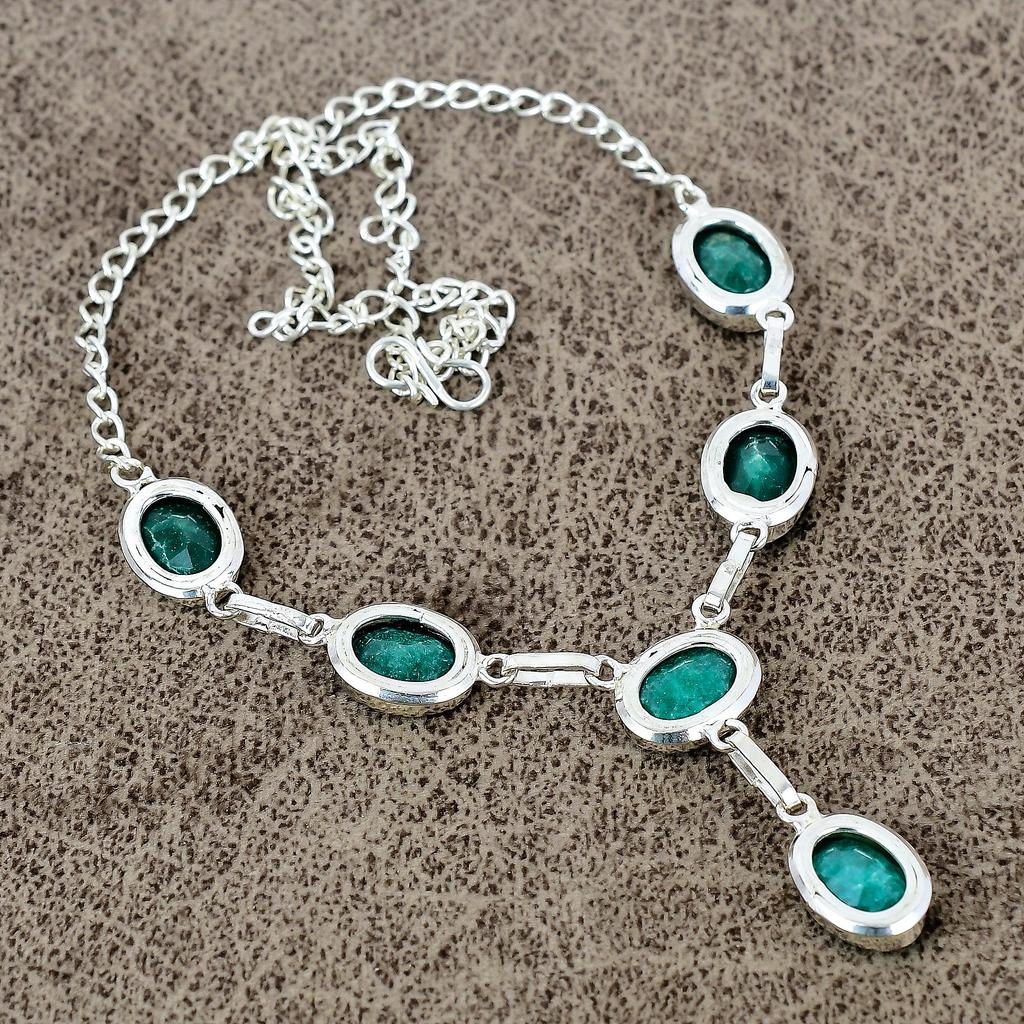 Green Jade Gemstone Handmade 925 Sterling Silver Jewelry Necklace 18" KKG-404