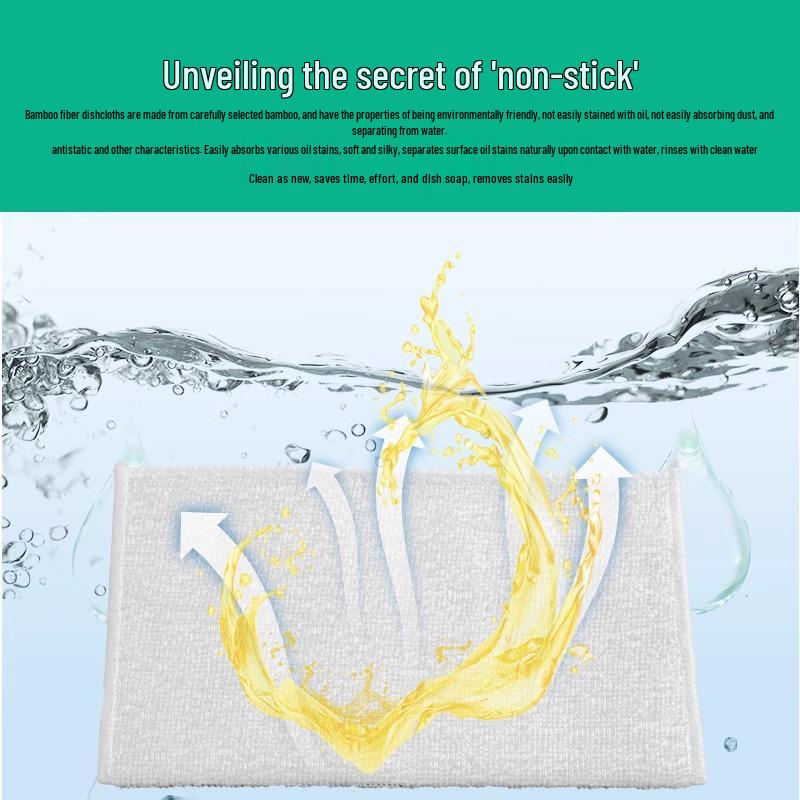 Неприлипающая салфетка и щетка из бамбукового волокна: Впитывающая, обезжиривающая подушечка для уборки кухни.