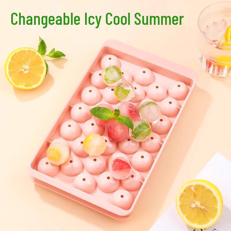 Food Grade Round Ice Cube Trays with Lids - Creative Sphere Mold for Home Refrigerator