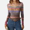 Женская приталенная футболка Модная повседневная с градиентным принтом Пуловер с круглым вырезом и длинным рукавом
