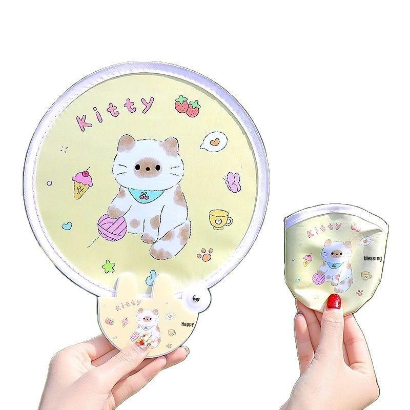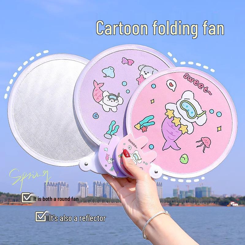 Портативный мультяшный мини-складной веер - Милый круглый веер для женщин, детей, студентов и для домашнего использования летом