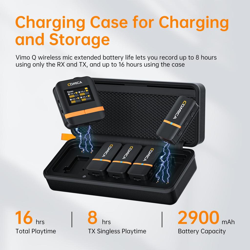 Comica Vimo Q Беспроводной петличный микрофон с 4 передатчиками и 1 приемником, дальность передачи 200 м, обработка звука CalMix, в комплекте зарядный кейс,
