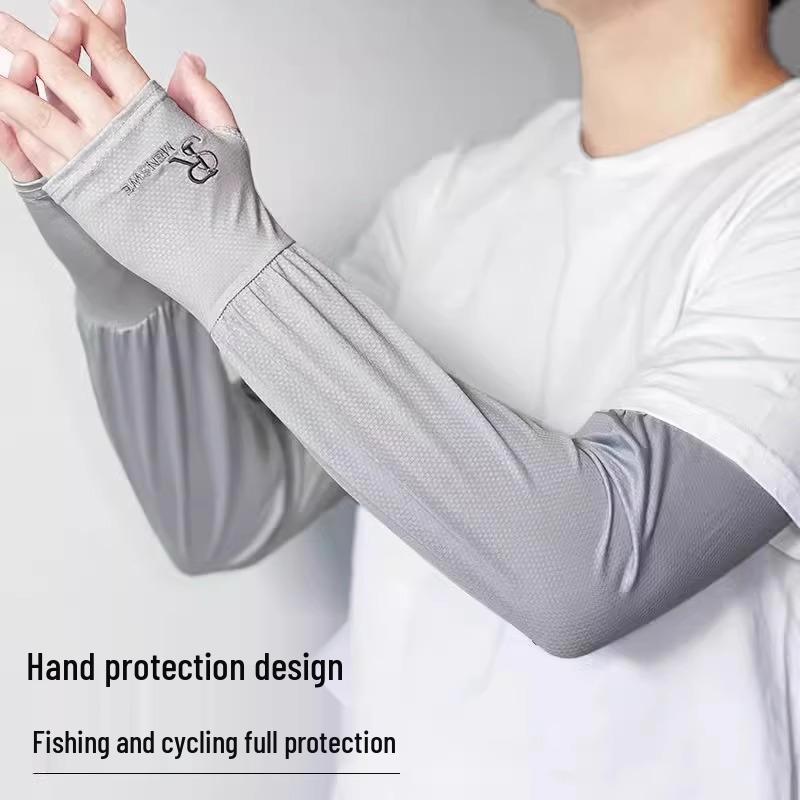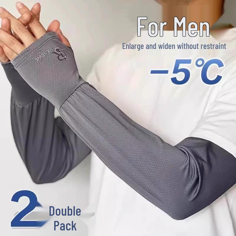 Мужские очень длинные рукава из ледяного шелка для защиты от солнца - Большой размер, Свободный крой, Защита от УФ-лучей