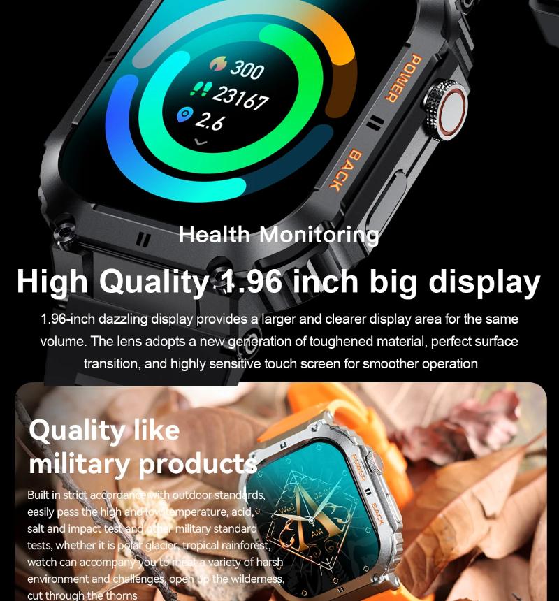 • Спортивный стиль :Благодаря спортивному стилю и корпусу из сплава эти смарт-часы не только функциональны, но и стильны, что делает их отличным аксессуаром для любого приключения на свежем воздухе.