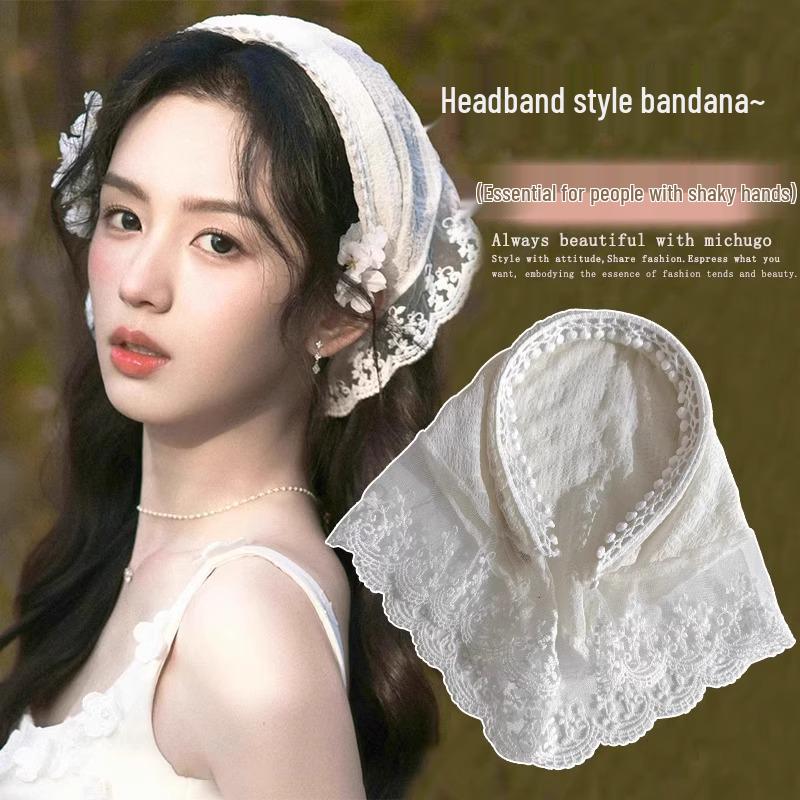 Кружевной вязаный крючком треугольный платок - Милая повязка на голову для девочек
