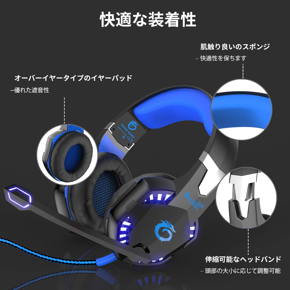 ВерсияTECH. Игровая гарнитура, Гарнитура PS4 с микрофоном, Совместима со Switch, ПК, PS4, Skype, FPS, Xbox One, Синяя, G2000