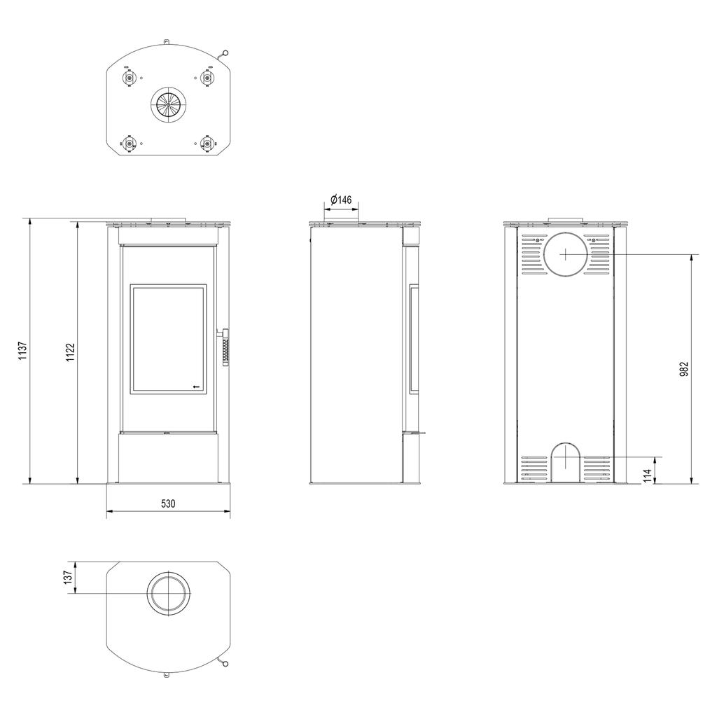 Мощность устройства позволяет эффективно обогреть площадь до 110 м2.. При сжигании сухой лиственной древесины вы также экономите деньги.