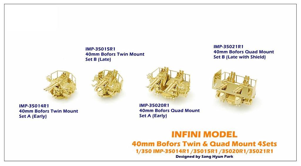 Серия деталей масштаба Infinimodel для ВМС США Bofors 40мм поздний набор пластиковая модель IMP3515 1/350 фототравленные корабельные двуствольные орудия, модель, 6, набор,