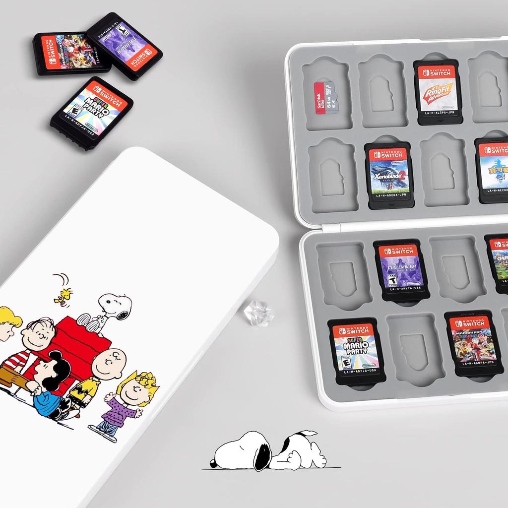 Dlseego Чехол-кейс для игровых карт Nintendo Switch на 24 карты Switch и 24 карты SD, Мягкий чехол, Портативный, Белый чехол Snoopy,