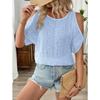 Весна и Лето Однотонный Топ с Открытыми Плечами и Вырезами, Рукав Летучая Мышь, Женские Футболки