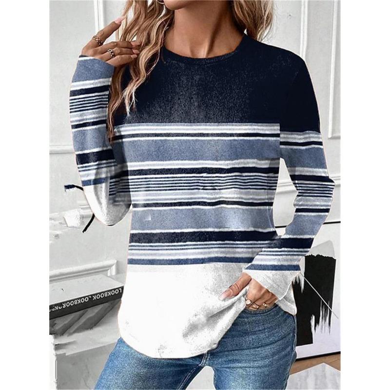 Весна Осень Футболки женские с длинным рукавом, в полоску, уличные, с 3D-принтом, женские футболки 3XL большого размера, повседневные топы