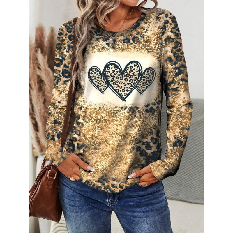 Женская футболка 3D Леопардовый Ретро Принт Модная С длинным рукавом Круглый вырез Обычный Топ Праздник Выходной Весна Осень — купить товар онлайн с бесплатной доставкой по всему миру!