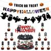 Terrifying Halloween party supplies banners, balloons, spiders and skeleton ghosts, Halloween tablecloths, and Halloween party decoration cake sets