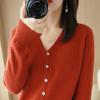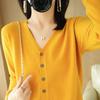 Осенне-зимняя мода Кардиган Женский свитер Вязаный V-образный вырез Длинный рукав Базовая рубашка Однотонный Повседневный Простой Базовый Топы Пальто