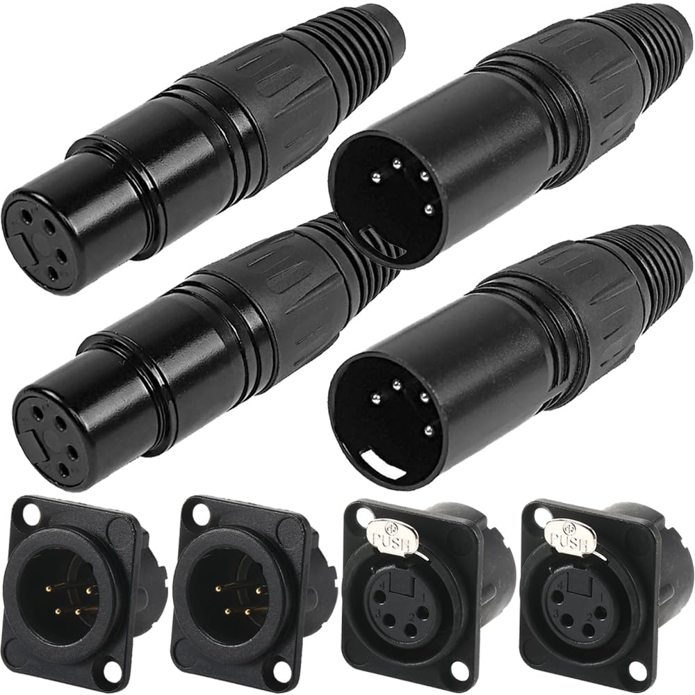 Xiatiaosann 4-контактный XLR штекер и гнездо Микрофонный змеевидный разъем Аудио микроразъем для микшеров и динамиков, с 2 парами 4-контактных XLR штекеров и гнезд