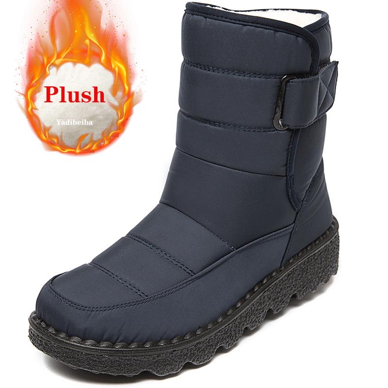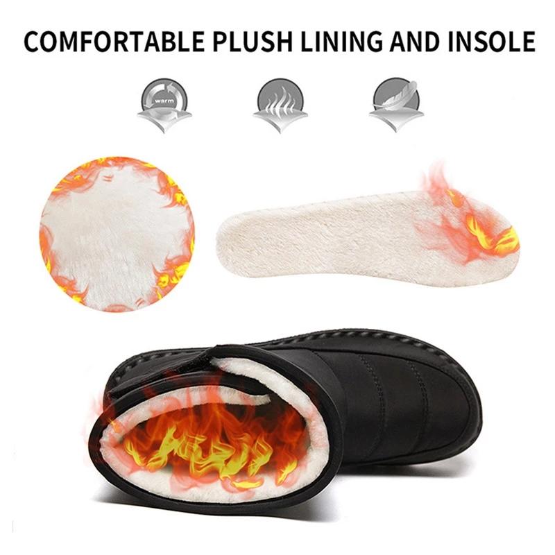 Теплые женские зимние ботинки Женские водонепроницаемые ботинки на липучке Европейский размер 44 Размер Женские ботинки Повседневная женская обувь