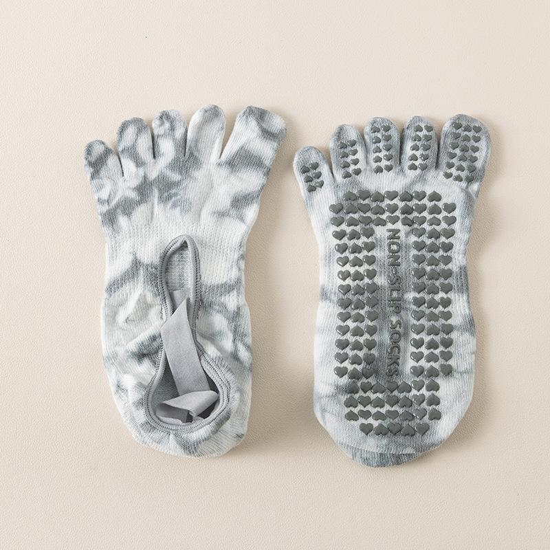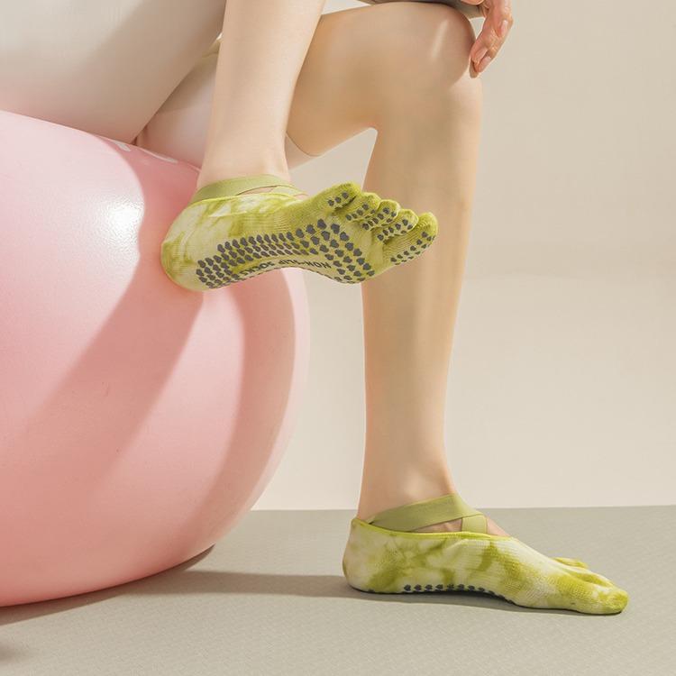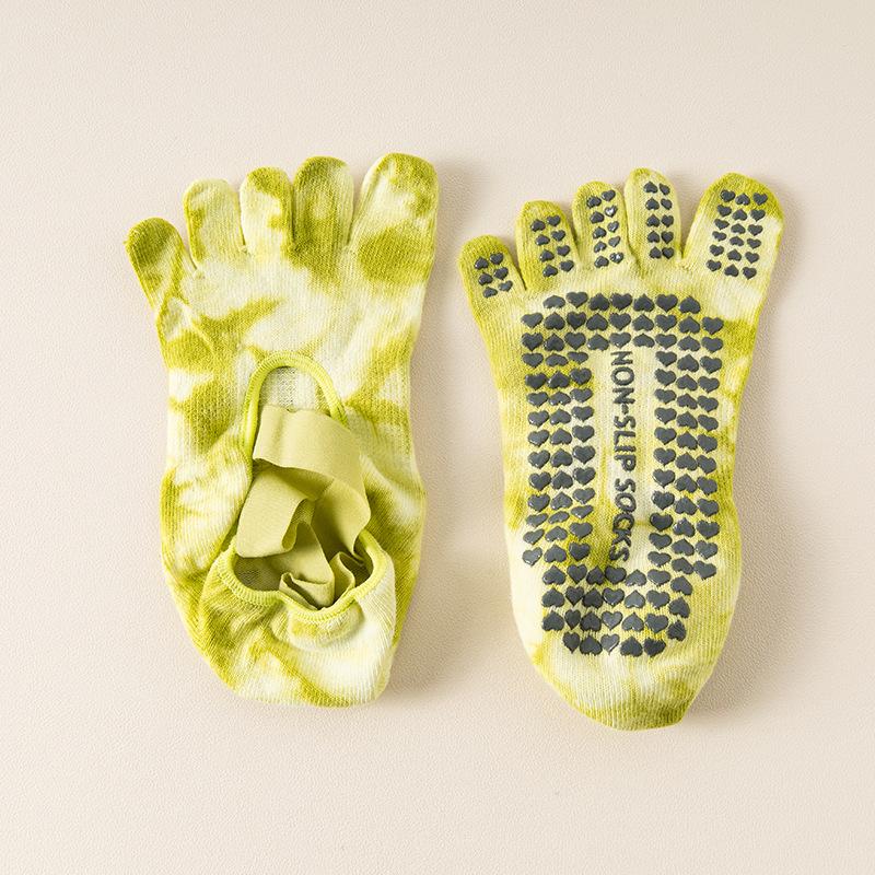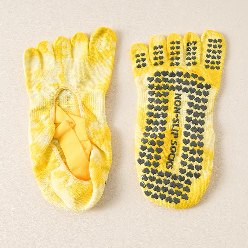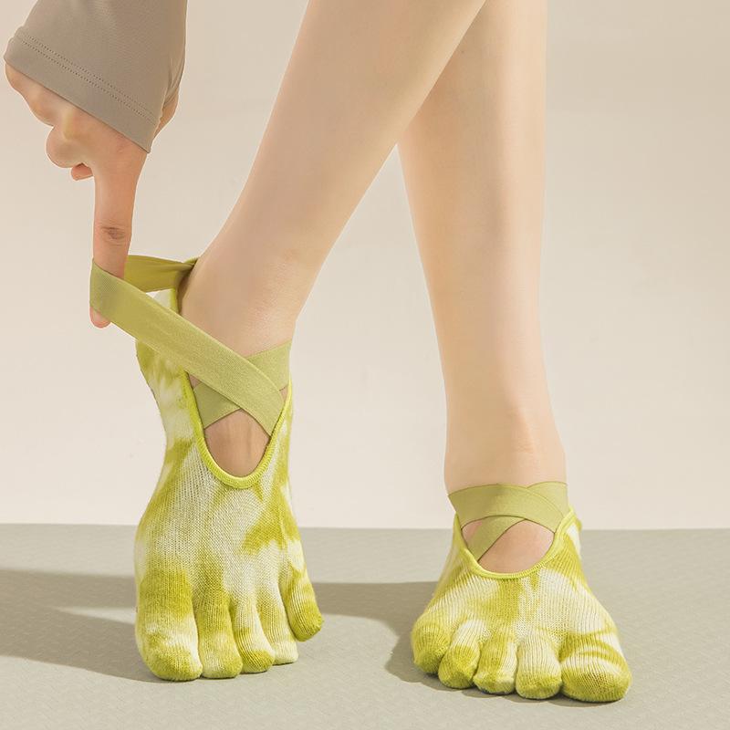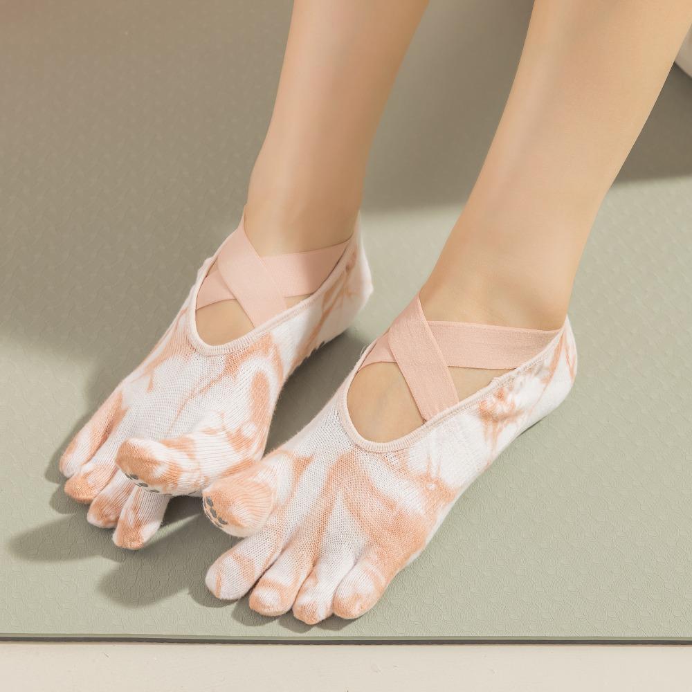 Носки для йоги с пятью пальцами женские без спинки дышащие бандажные тай-дай носки для пилатеса силиконовые нескользящие для тренировок в помещении танцев спортивные носки