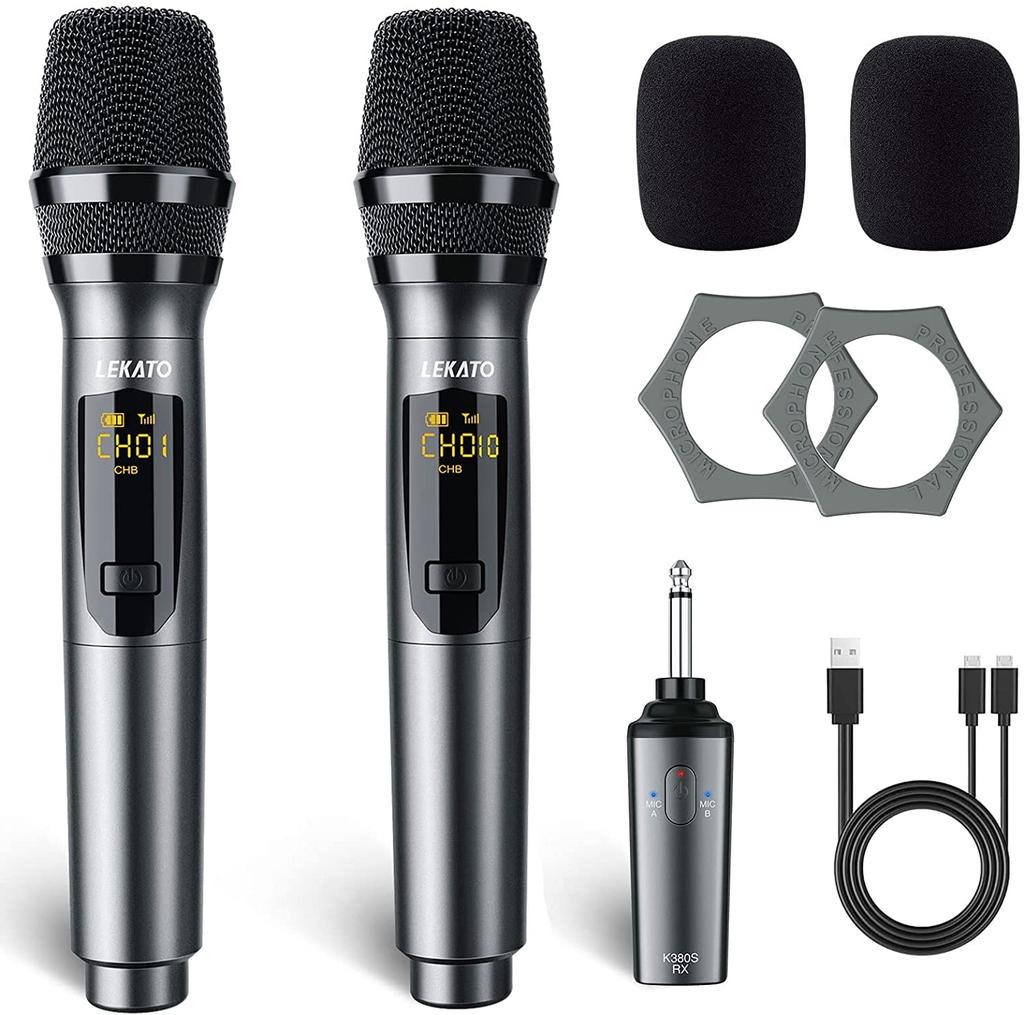 Перезаряжаемый беспроводной динамический микрофон LEKATO, ручной микрофон УВЧ с мини-приемником, идеально подходит для встреч, караоке и домашних вечеринок [Набор из