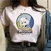 Графическая Каваи Эстетика Графическая Футболка с Коротким Рукавом с Принтом Genshin Женские Футболки Харадзюку Круглый Вырез Повседневные Топы Женская Одежда
