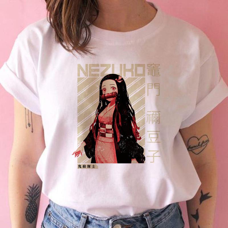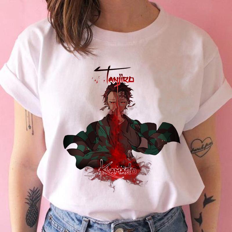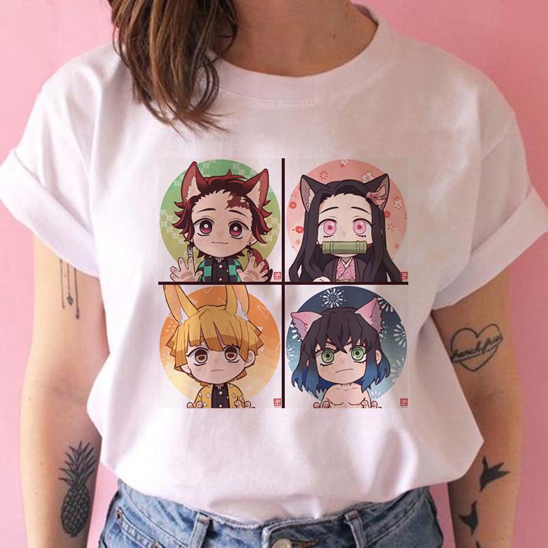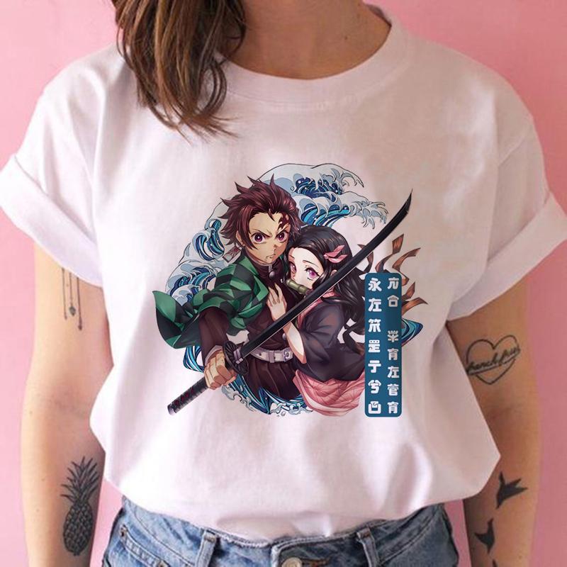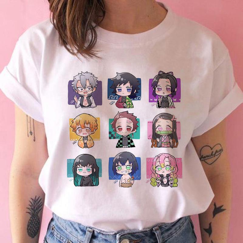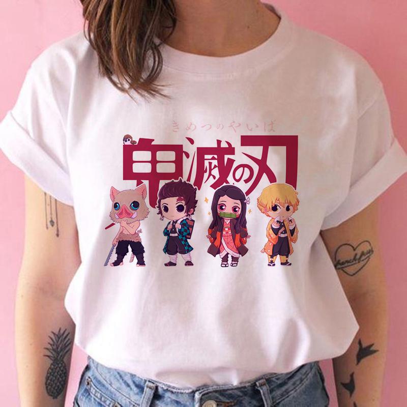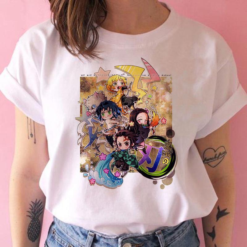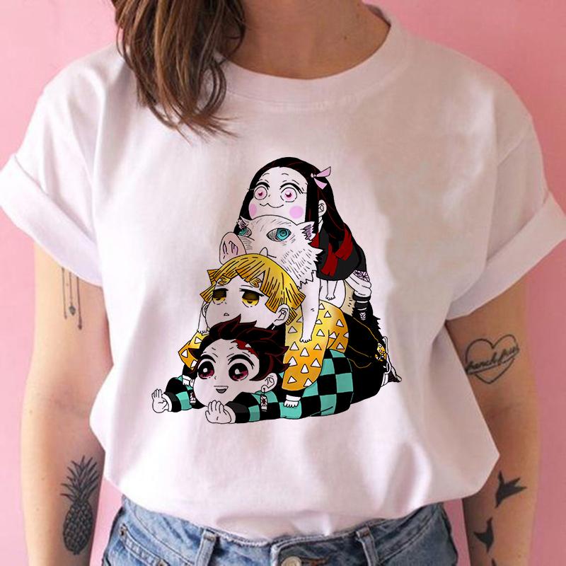 2023 Новая женская футболка Kimetsu No Yaiba Demon Slayer Топ Женская футболка Харадзюку Уличная одежда Круглый вырез Повседневные женские футболки Одежда