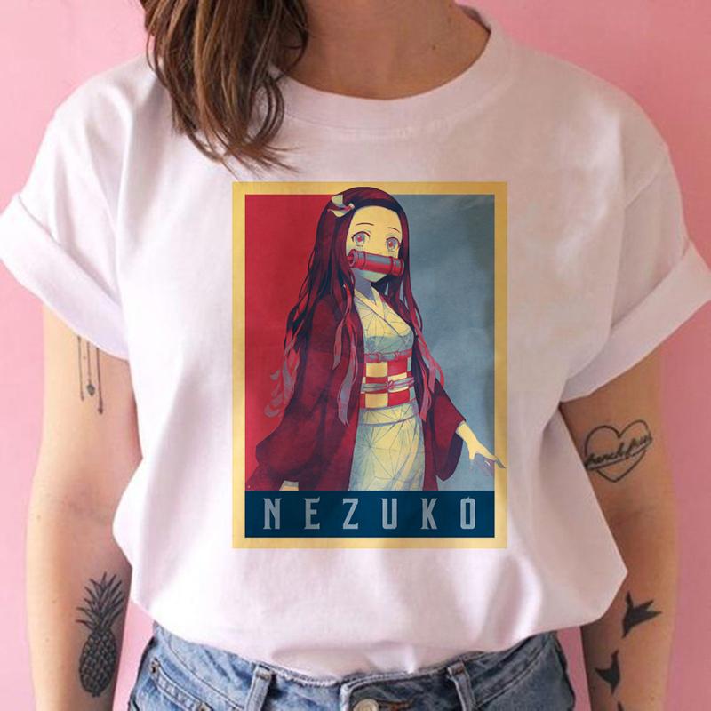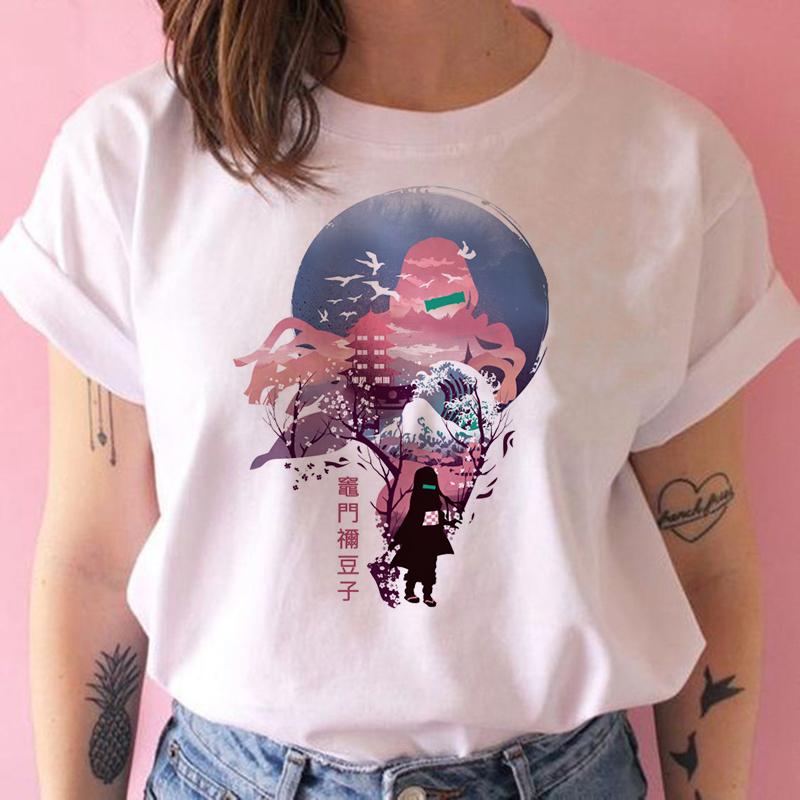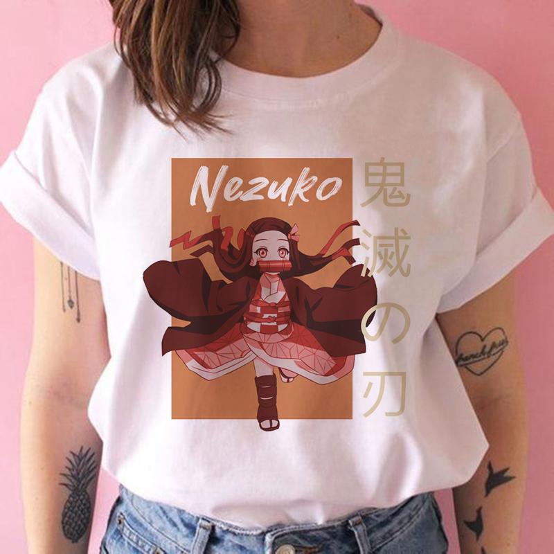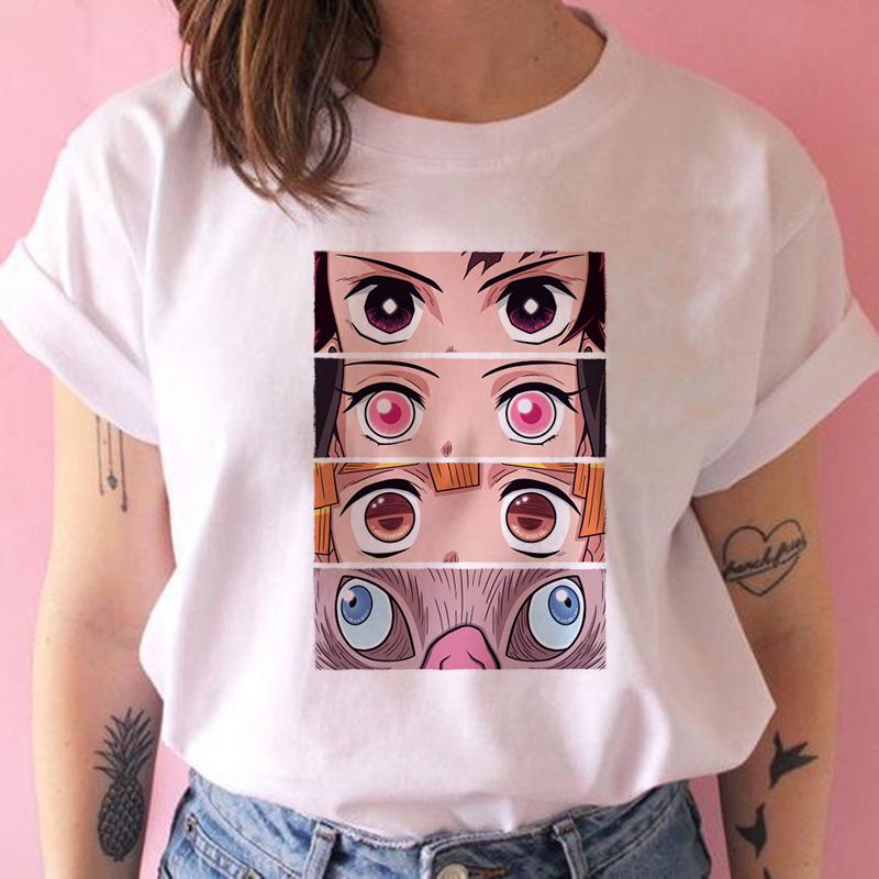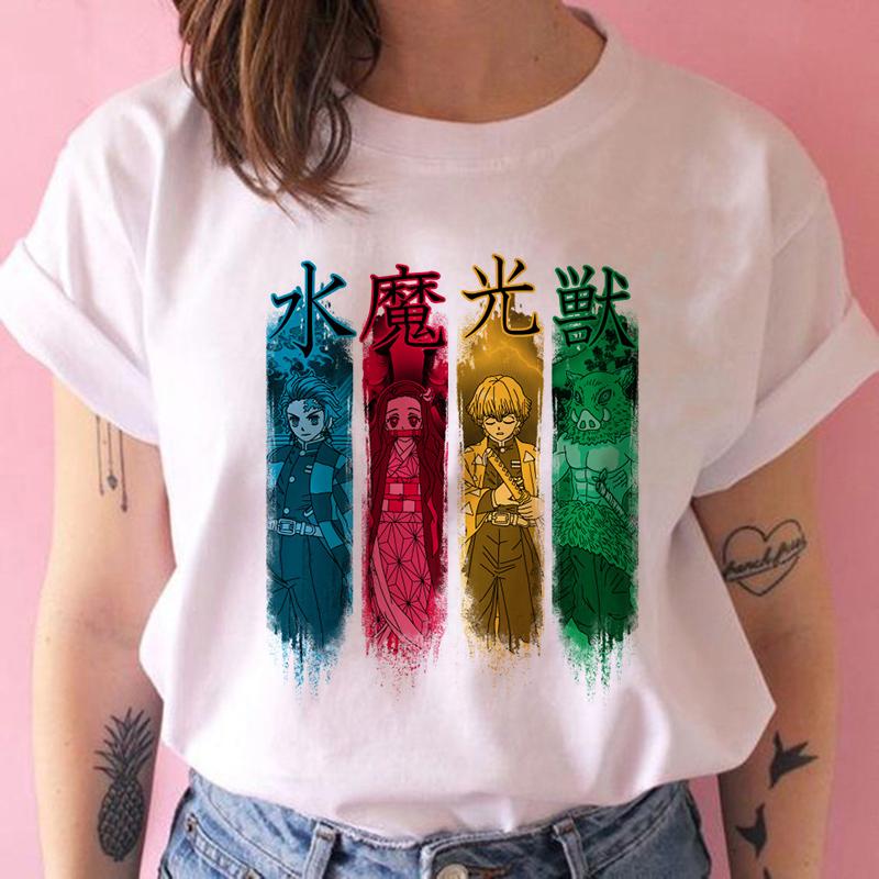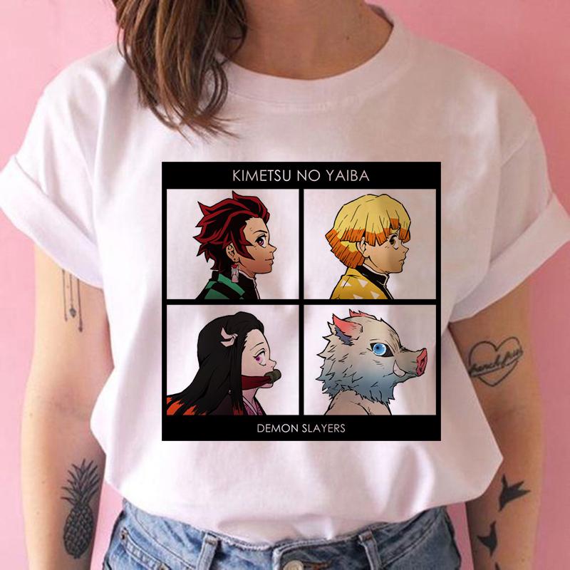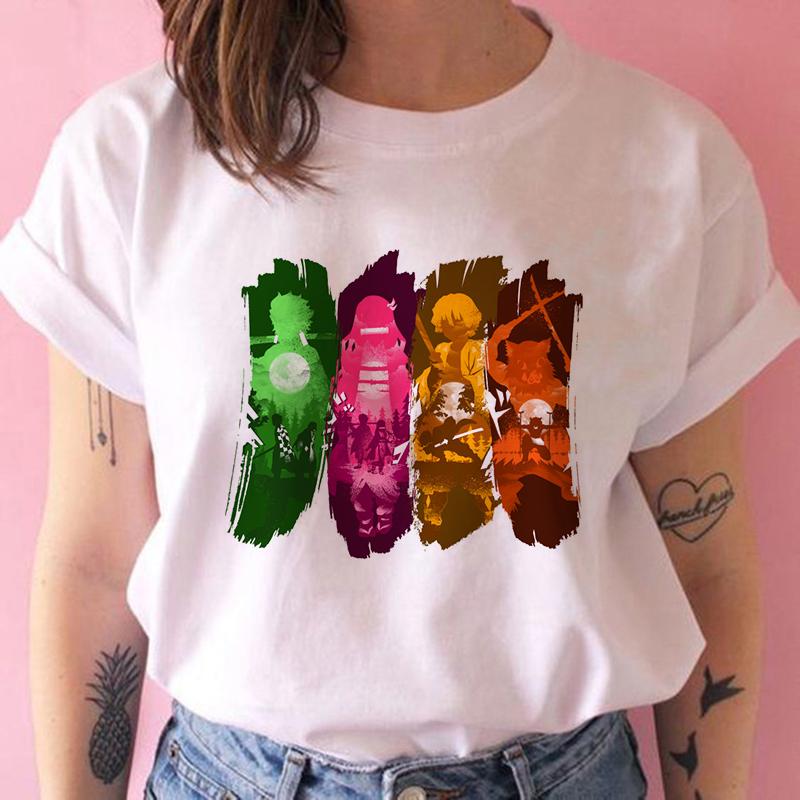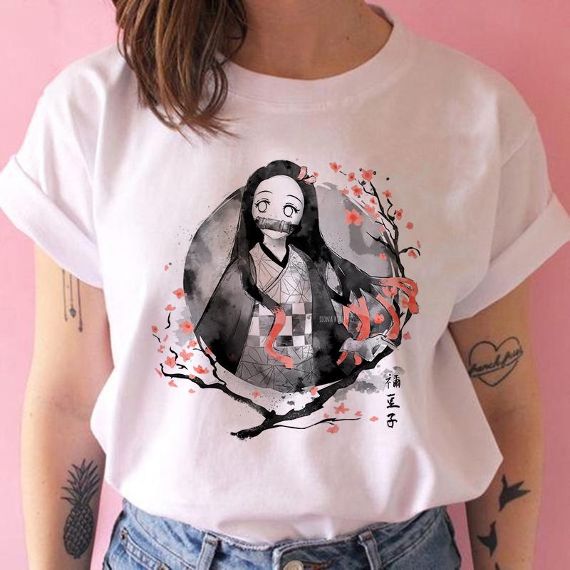 2023 Новая женская футболка Kimetsu No Yaiba Demon Slayer Топ Женская футболка Харадзюку Уличная одежда Круглый вырез Повседневные женские футболки Одежда