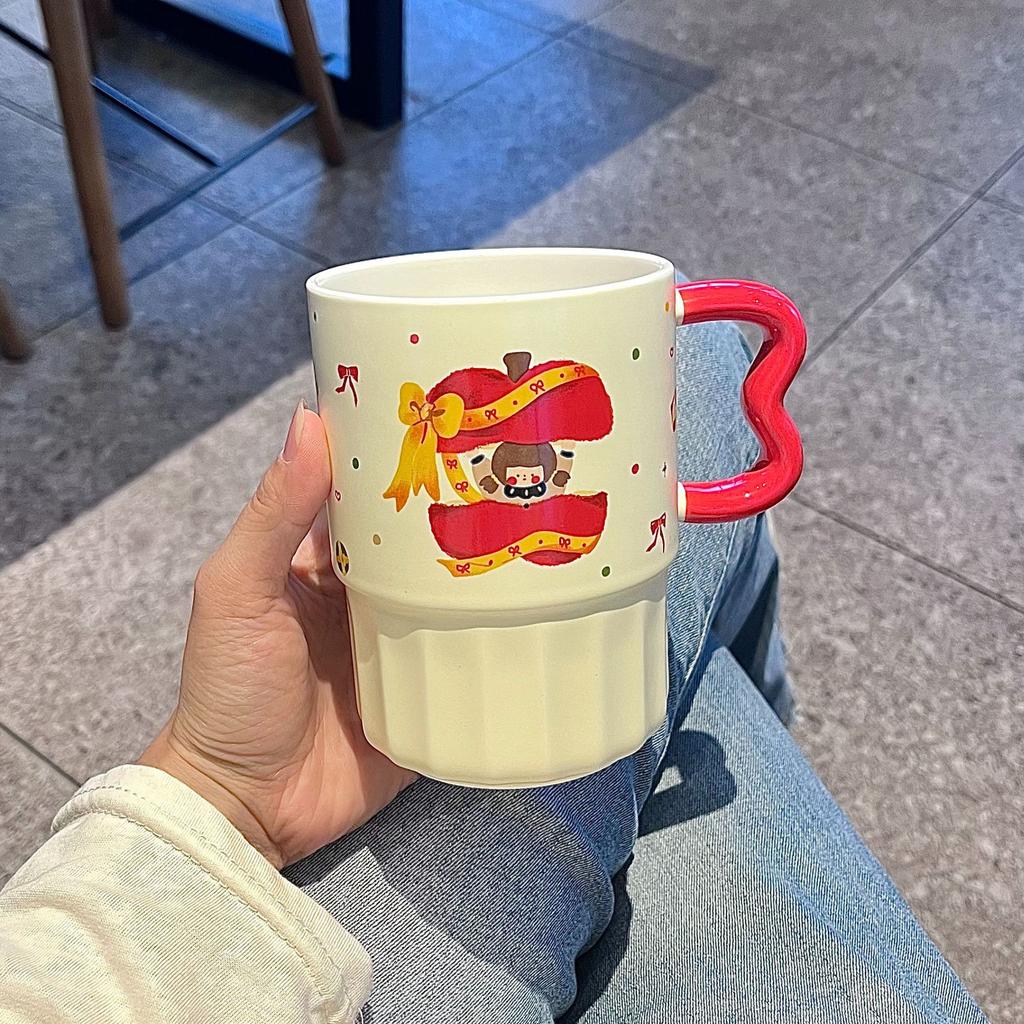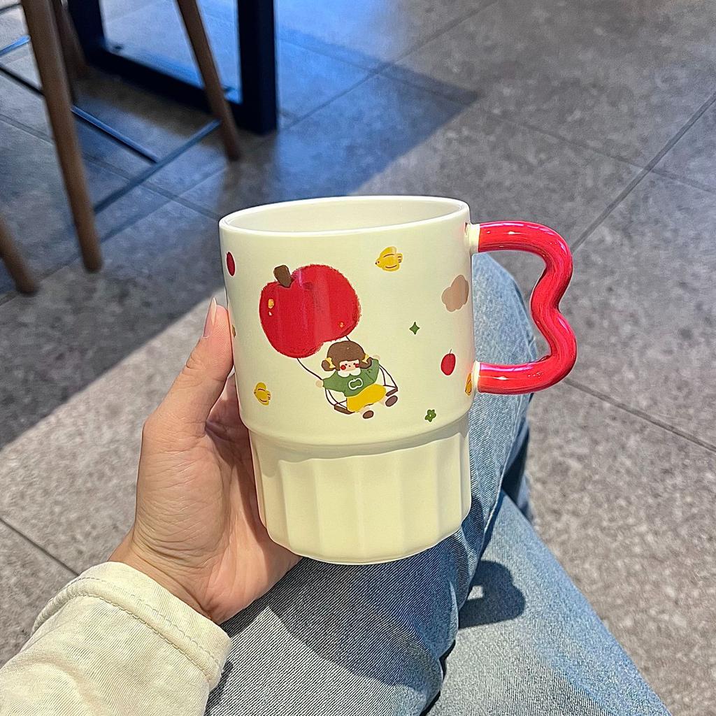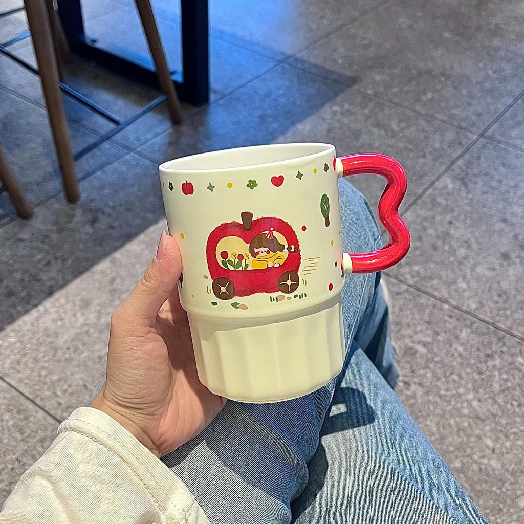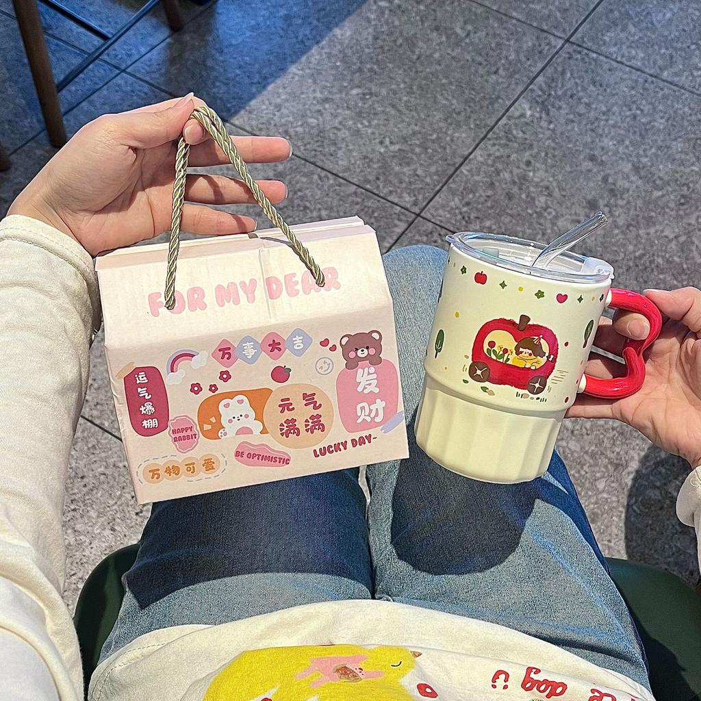 Кружка Apple Girl с крышкой и соломинкой, милая, высококачественная керамическая чашка для воды, бытовая чашка для кофе и сока