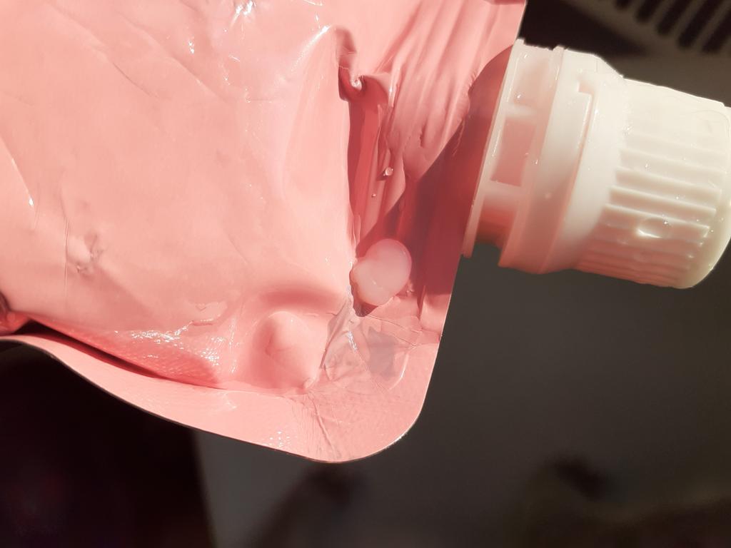 Упакован товар в пакет с и ещё на половину пачки в итоге маска протекла(((. Повреждена упаковка
