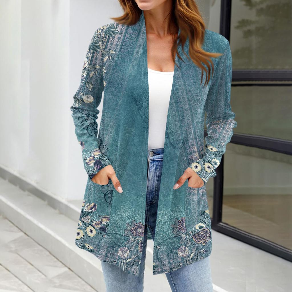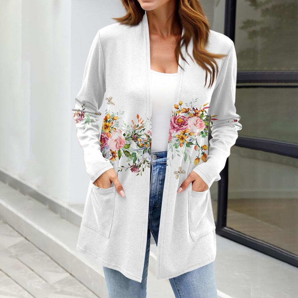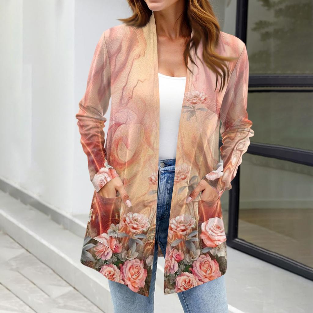 Женские легкие кардиганы с открытой передней частью, с длинными рукавами, повседневные, свободные, тонкие кардиганы с карманами