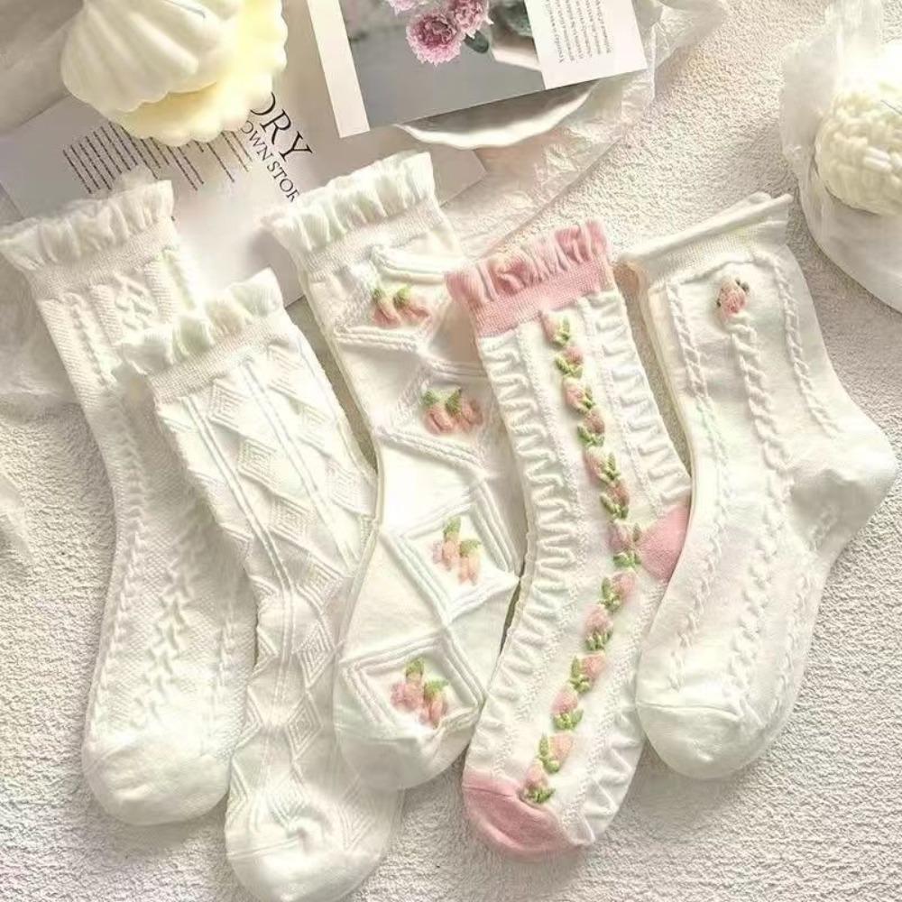 5 пар хлопковых носков с рюшами в стиле Лолита, милый кружевной женский набор носков, мягкие носки средней длины, осень-зима