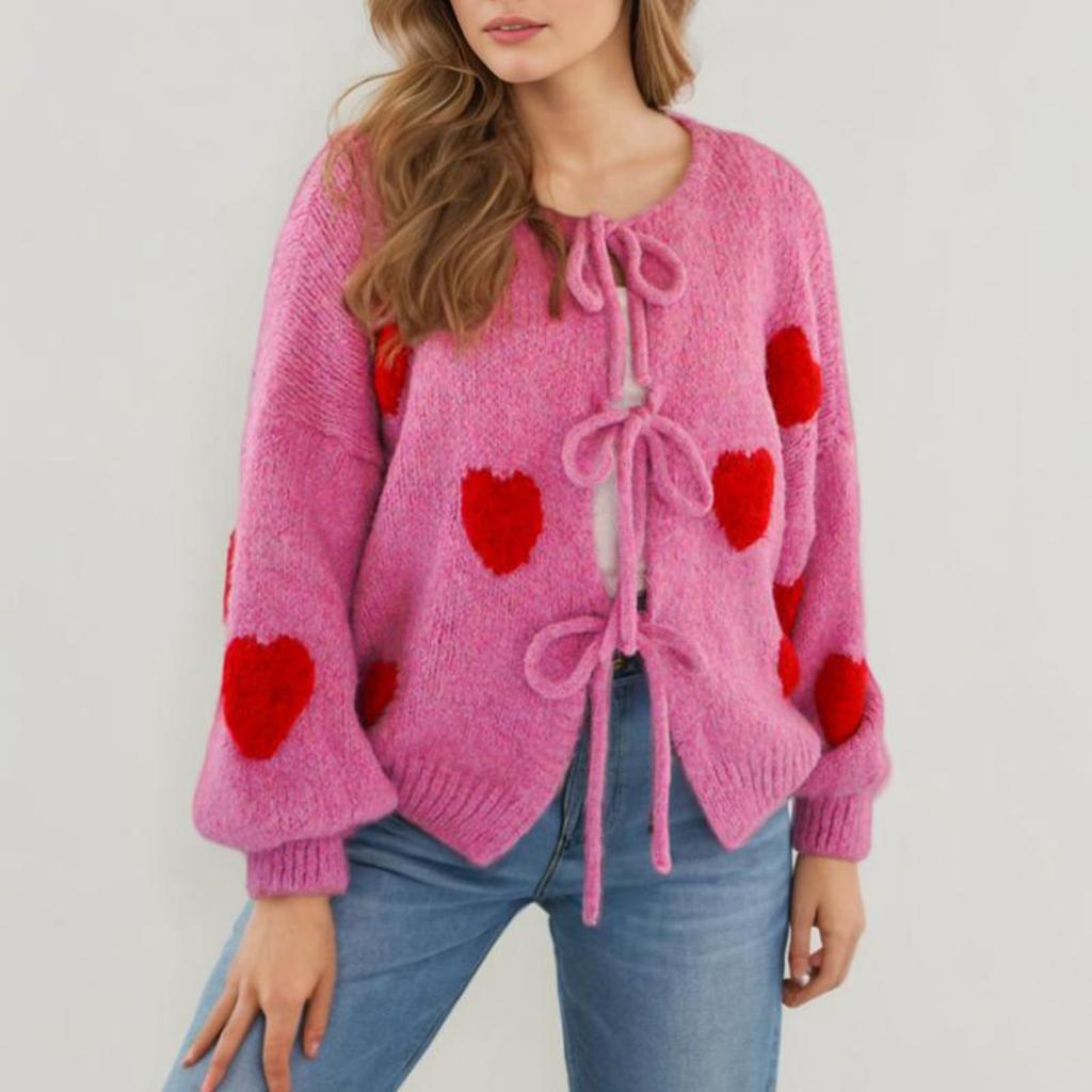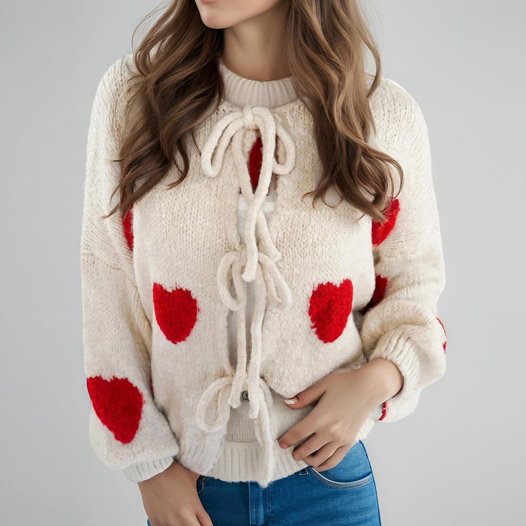Вышивка в виде сердца с круглым вырезом и зимний свитер, повязка на кардиган, вязаный кардиган, куртка для женщин